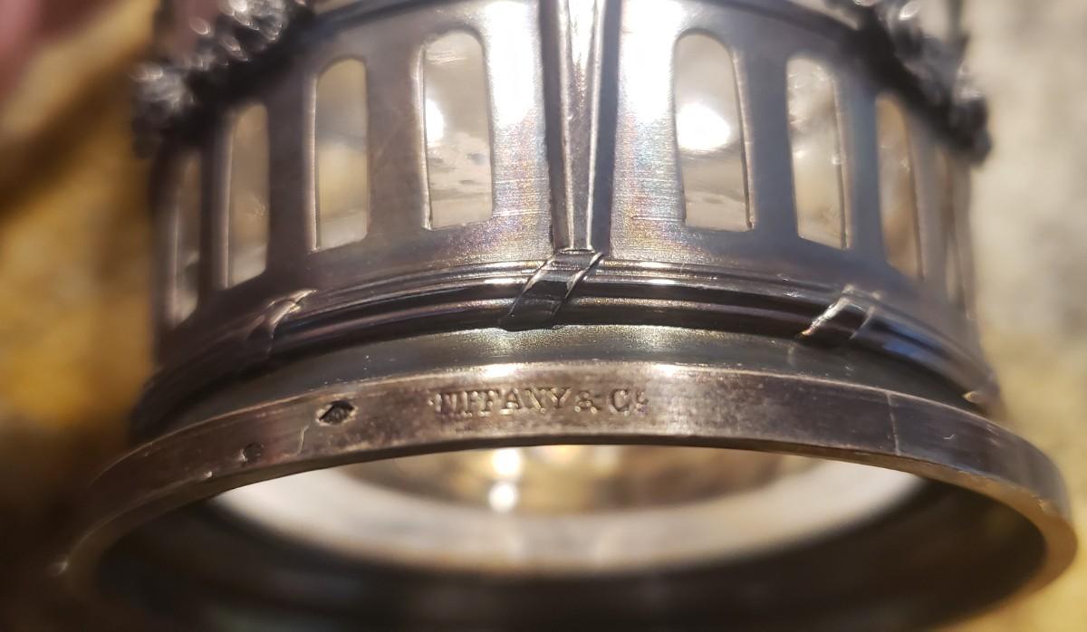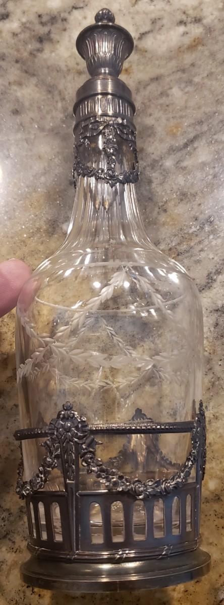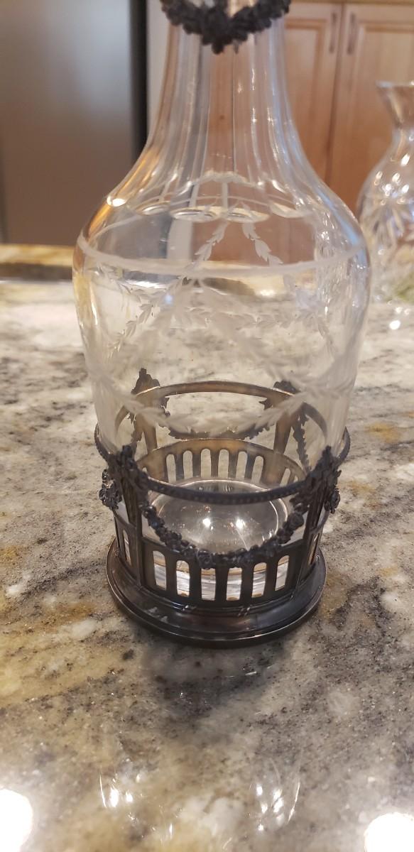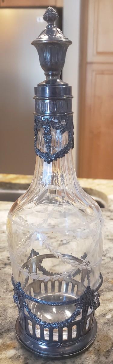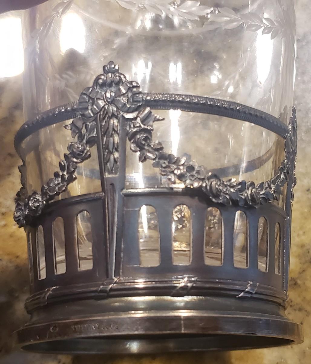 Tiffany Glass Dekanter with Sterling Silver Holder