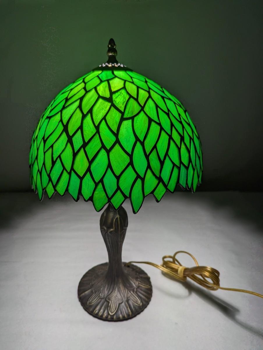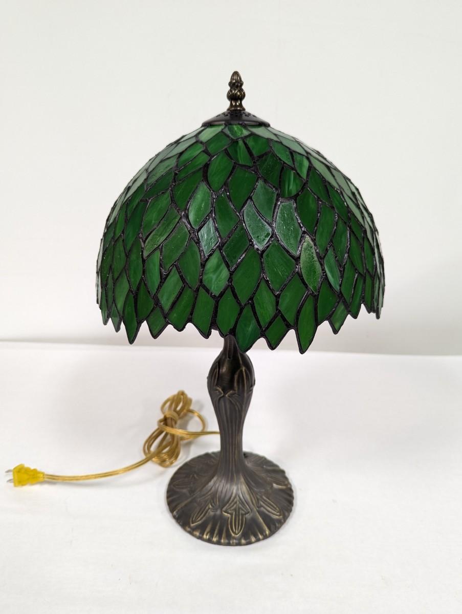 Tiffany Style Green Leaf Glass Tabletop Lamp