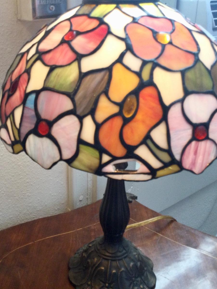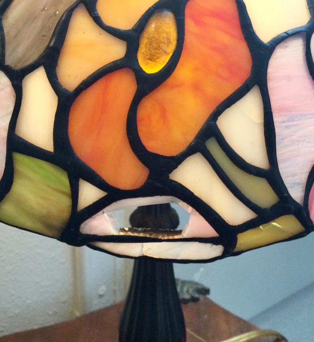 Tiffany style lamp reproduction has some damage