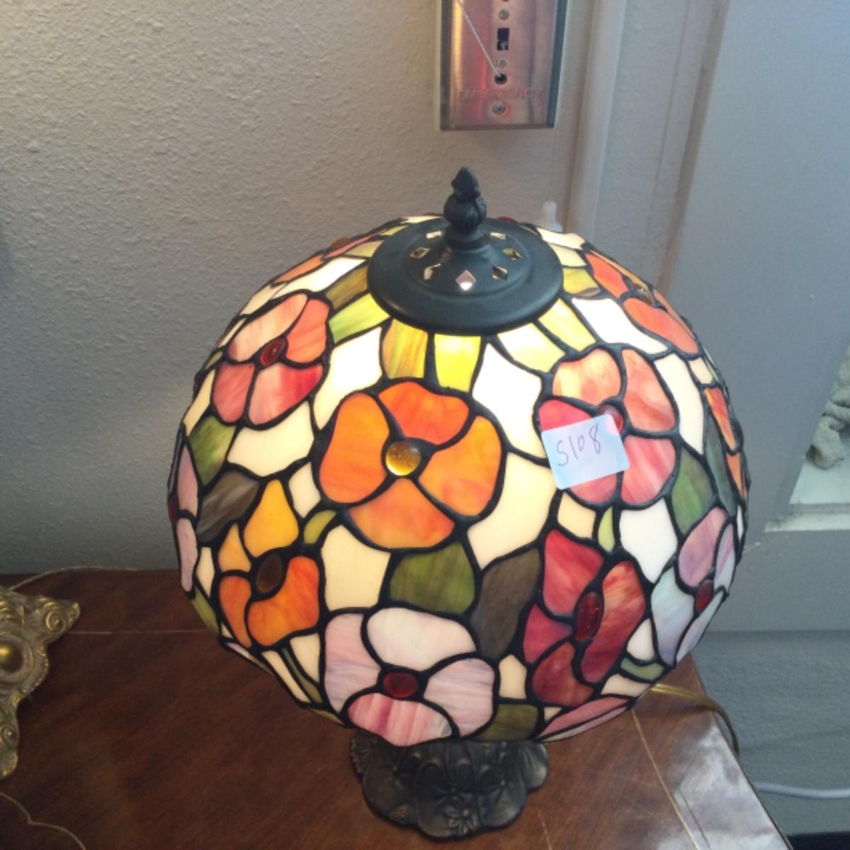 See detail pictures beautiful lamp has missing glass and a few cracked panels