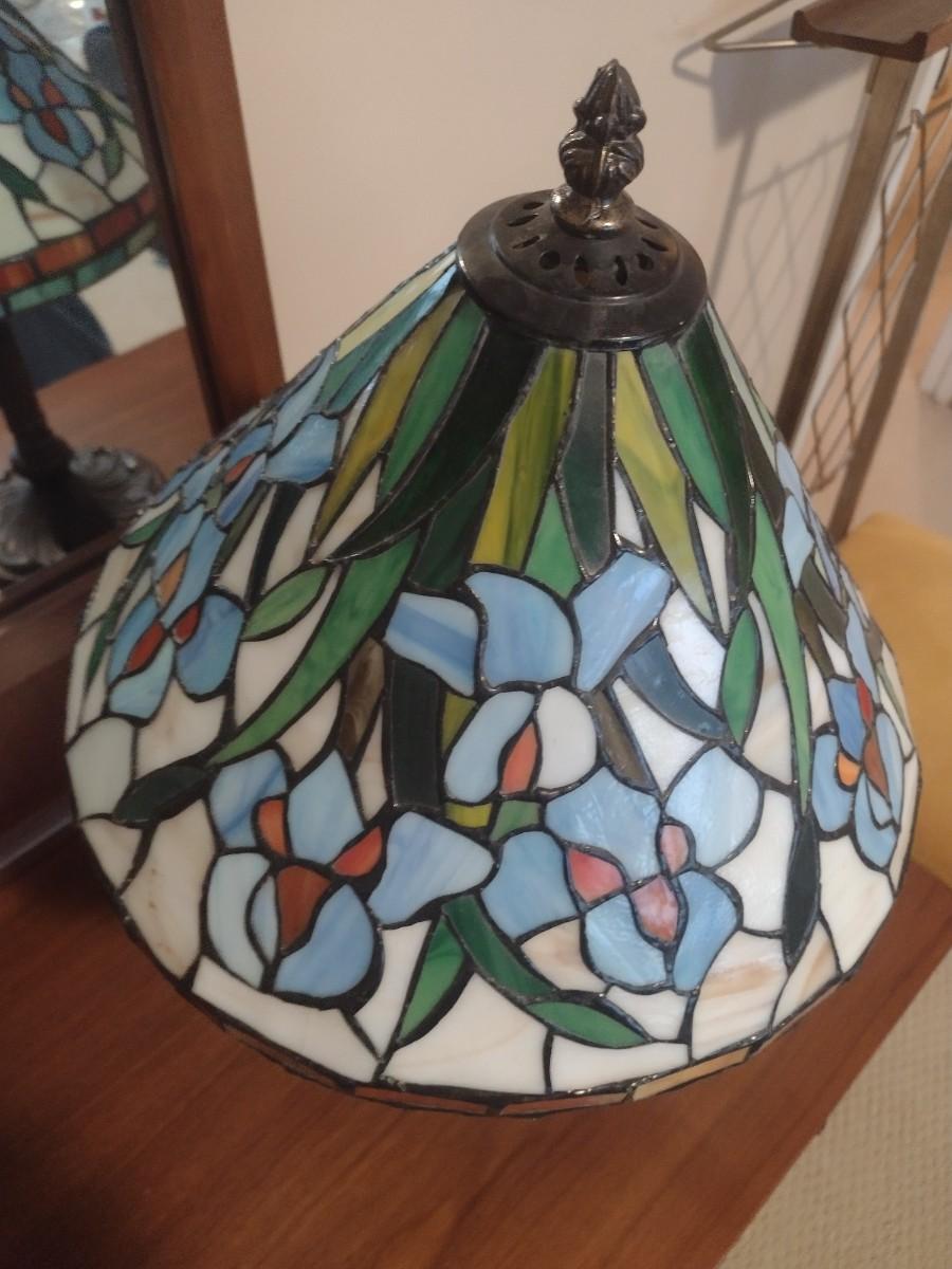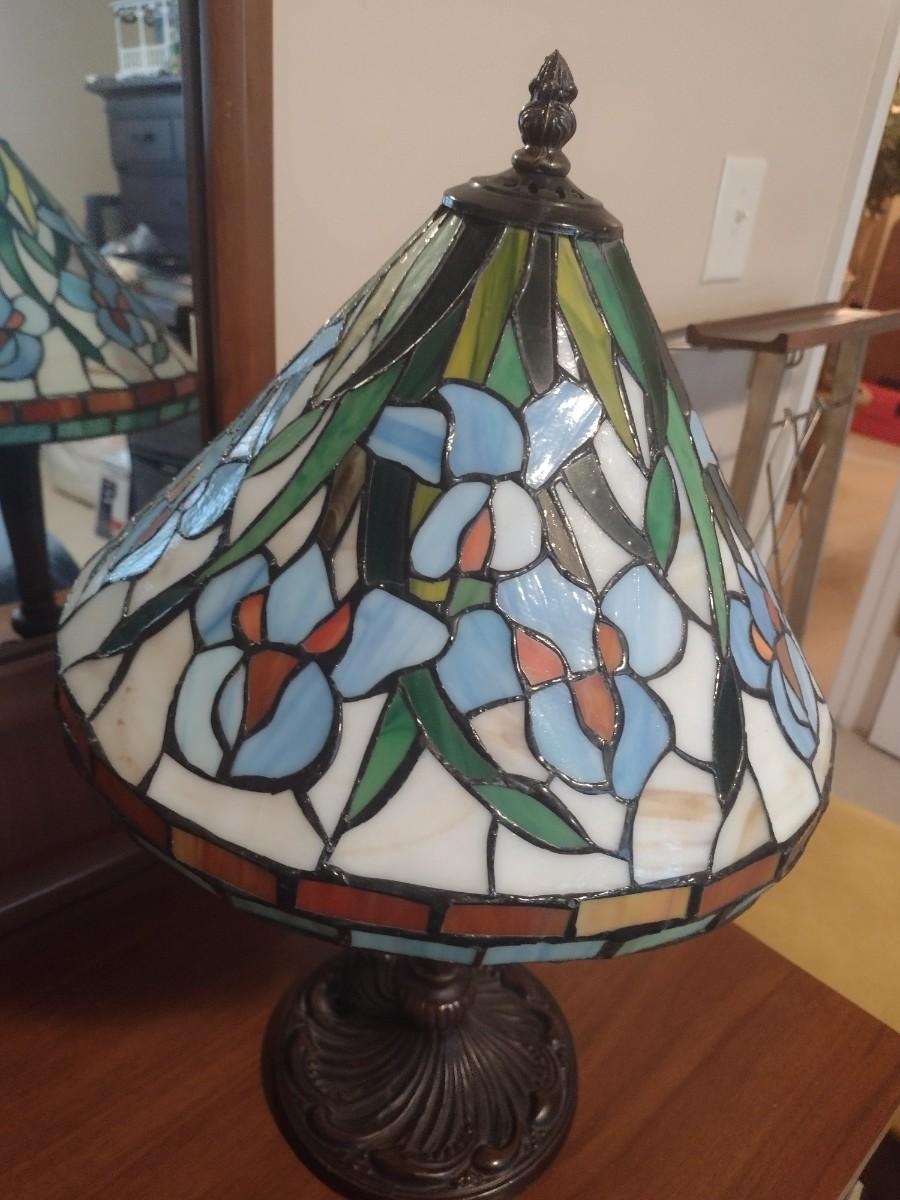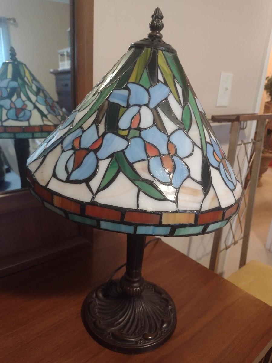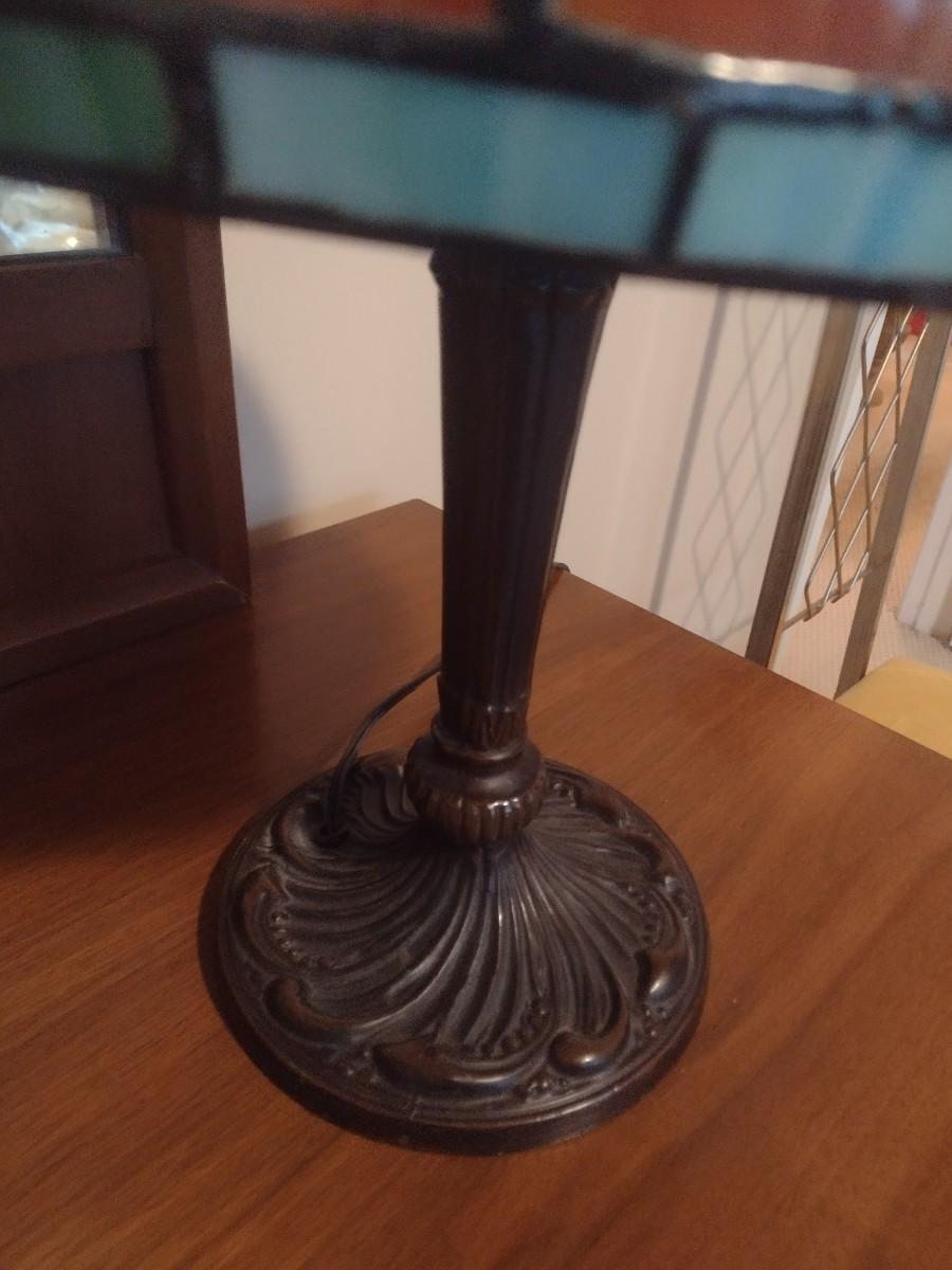 Tiffany Style Shade Electric Table Lamp. Will need a new cord or repair as shown