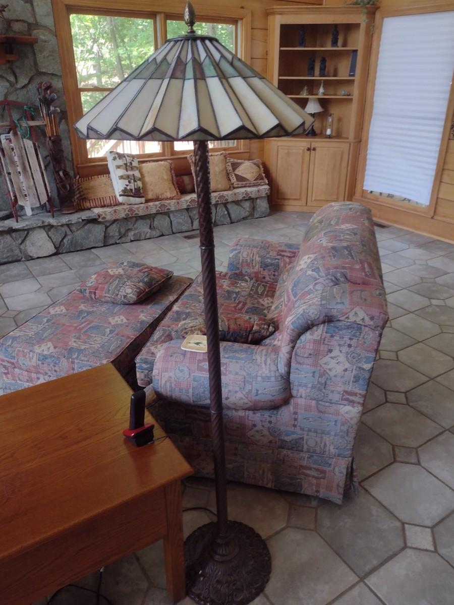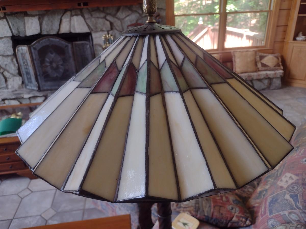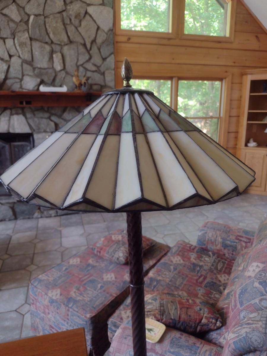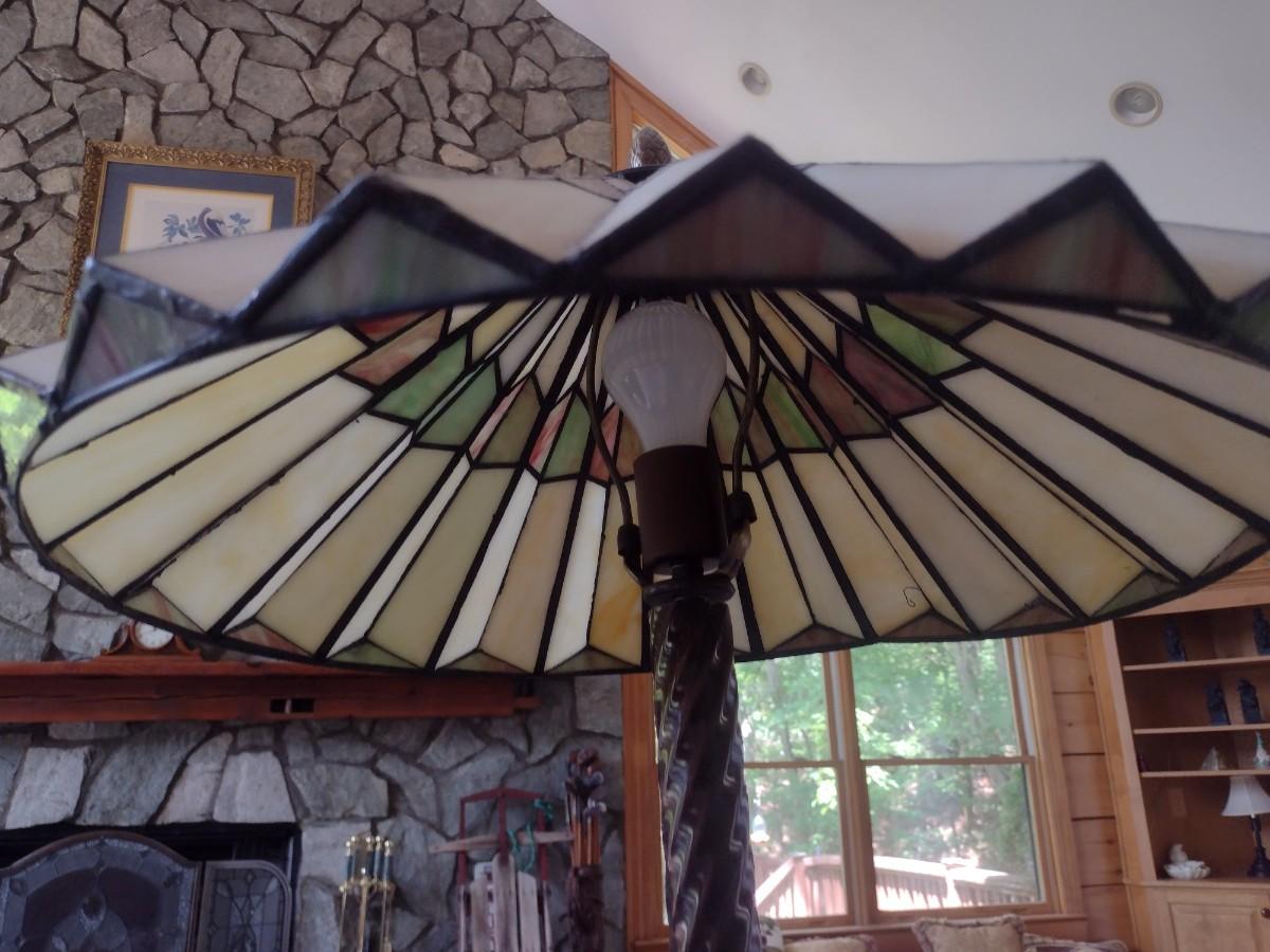 Tiffany Style Shade Floor Lamp with Ruffled Design Shade and Metal Post