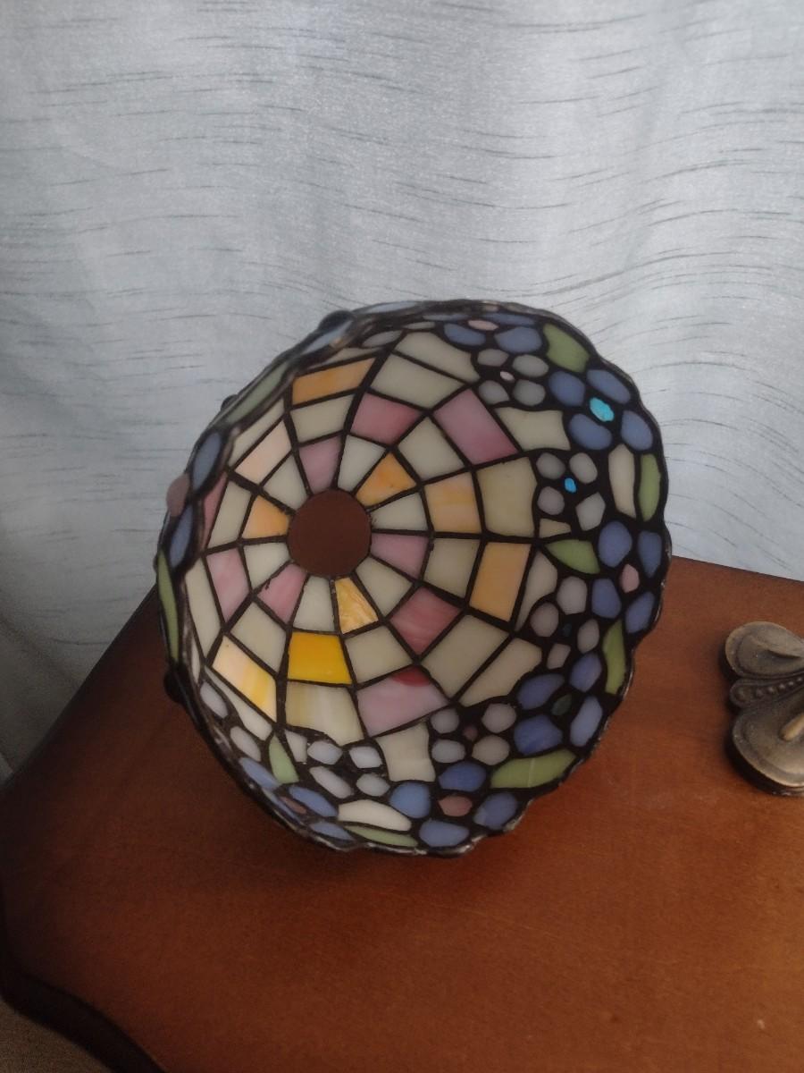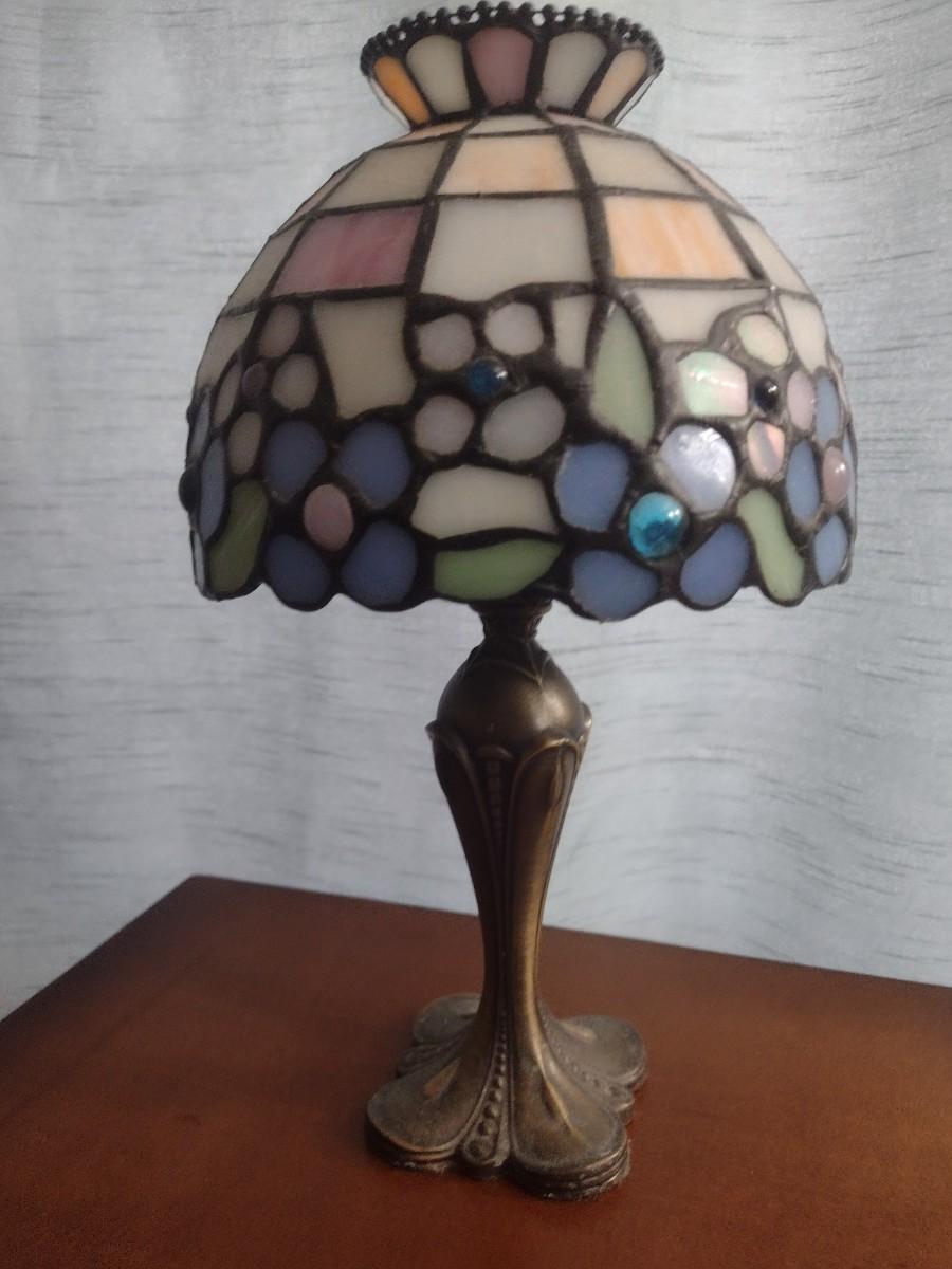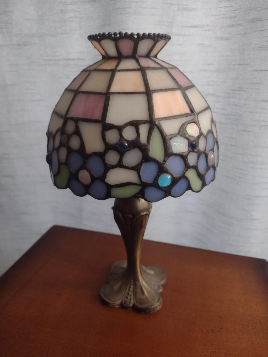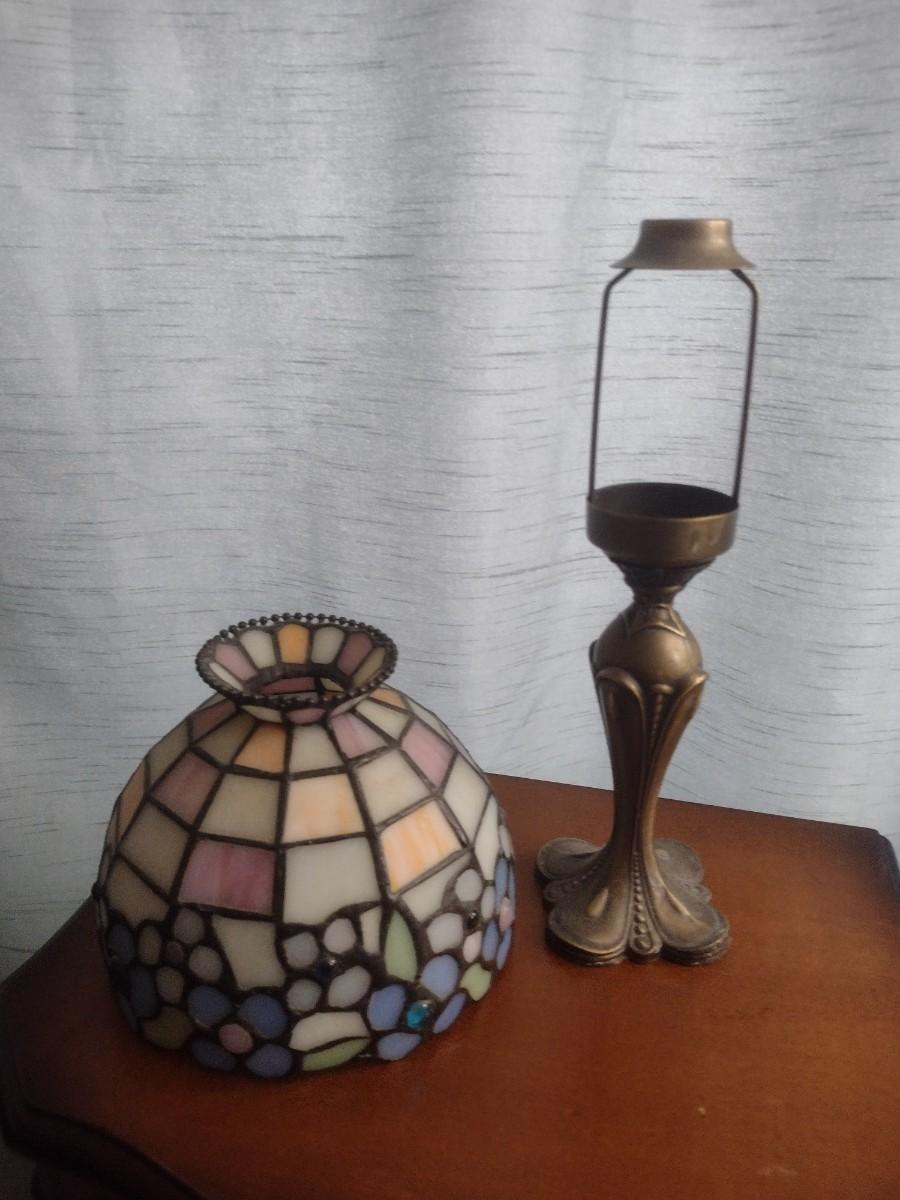 Tiffany Style Shade Partylite Tea Light Candle Table Lantern with Brass Post