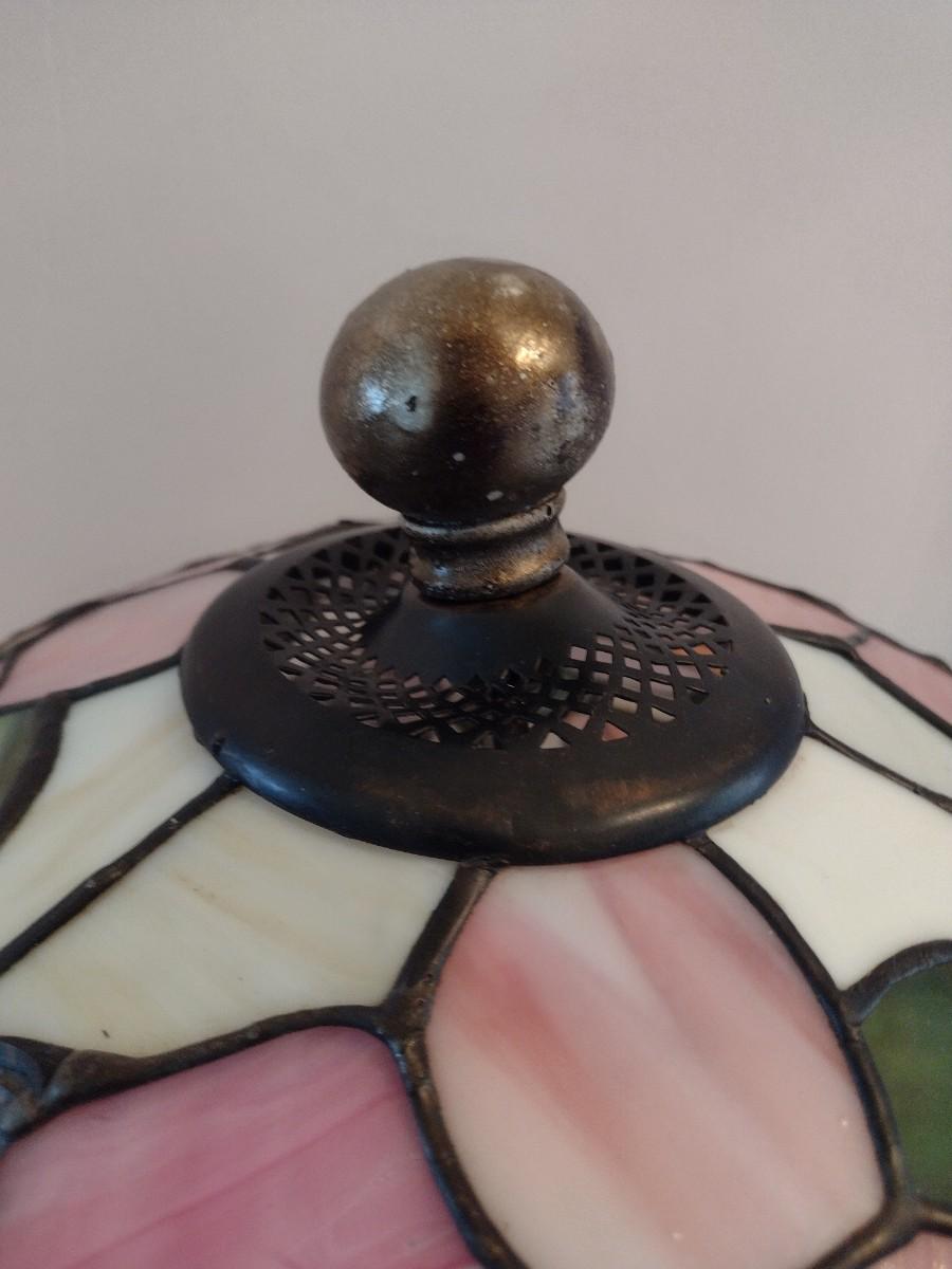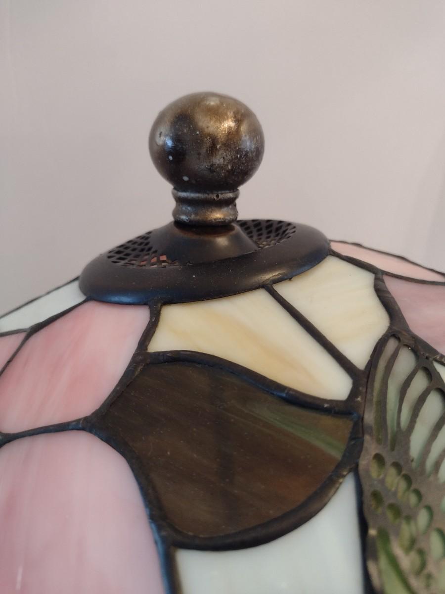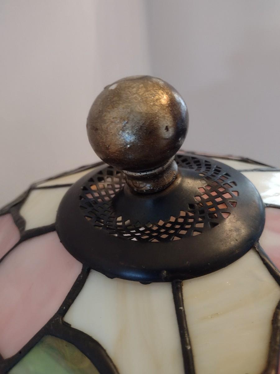 Tiffany Style Shade Table Lamp. The finial cap has been bent from a fall as shown.