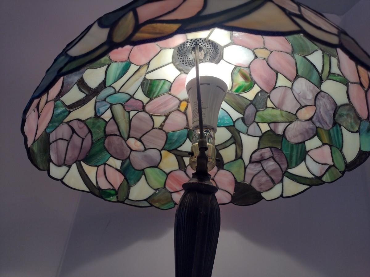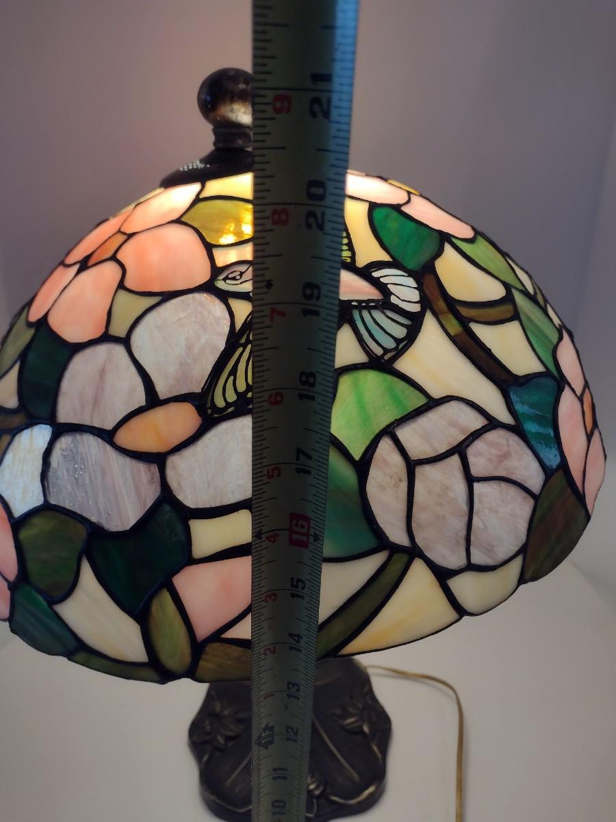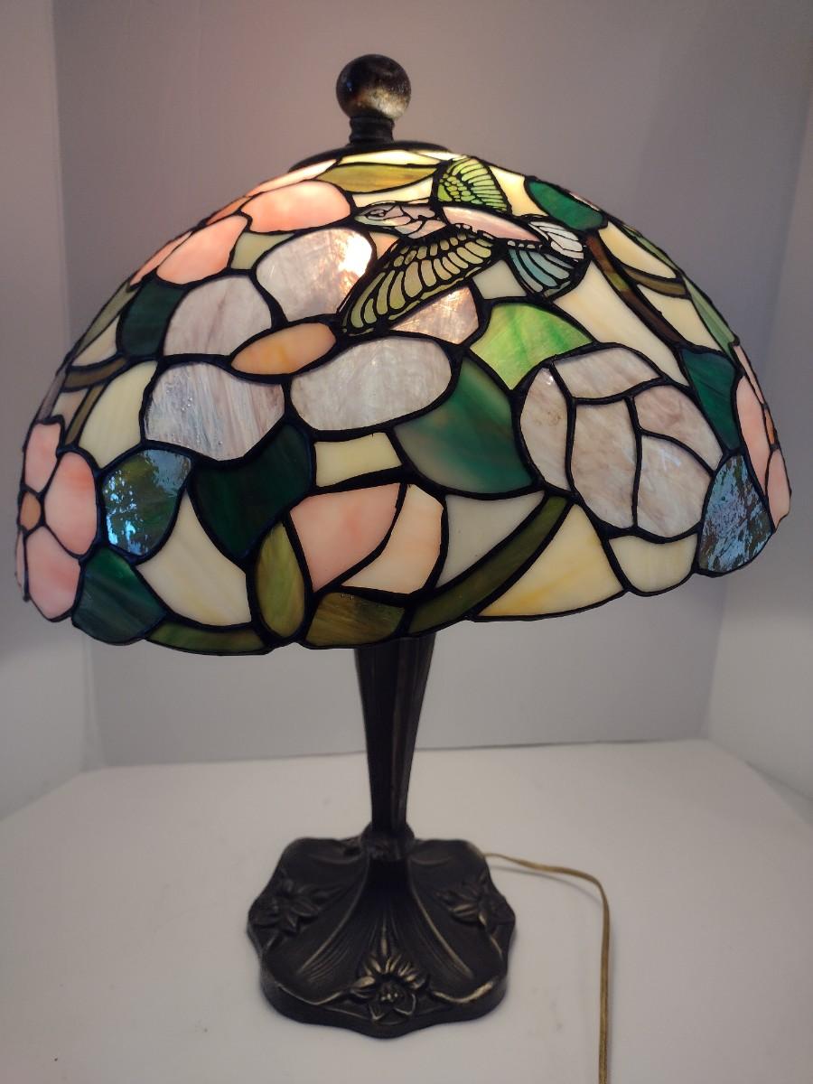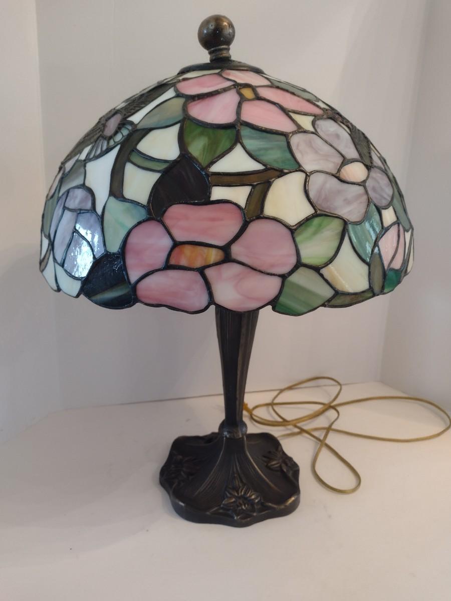 Tiffany Style Shade Table Lamp. The finial cap has been bent from a fall as shown.