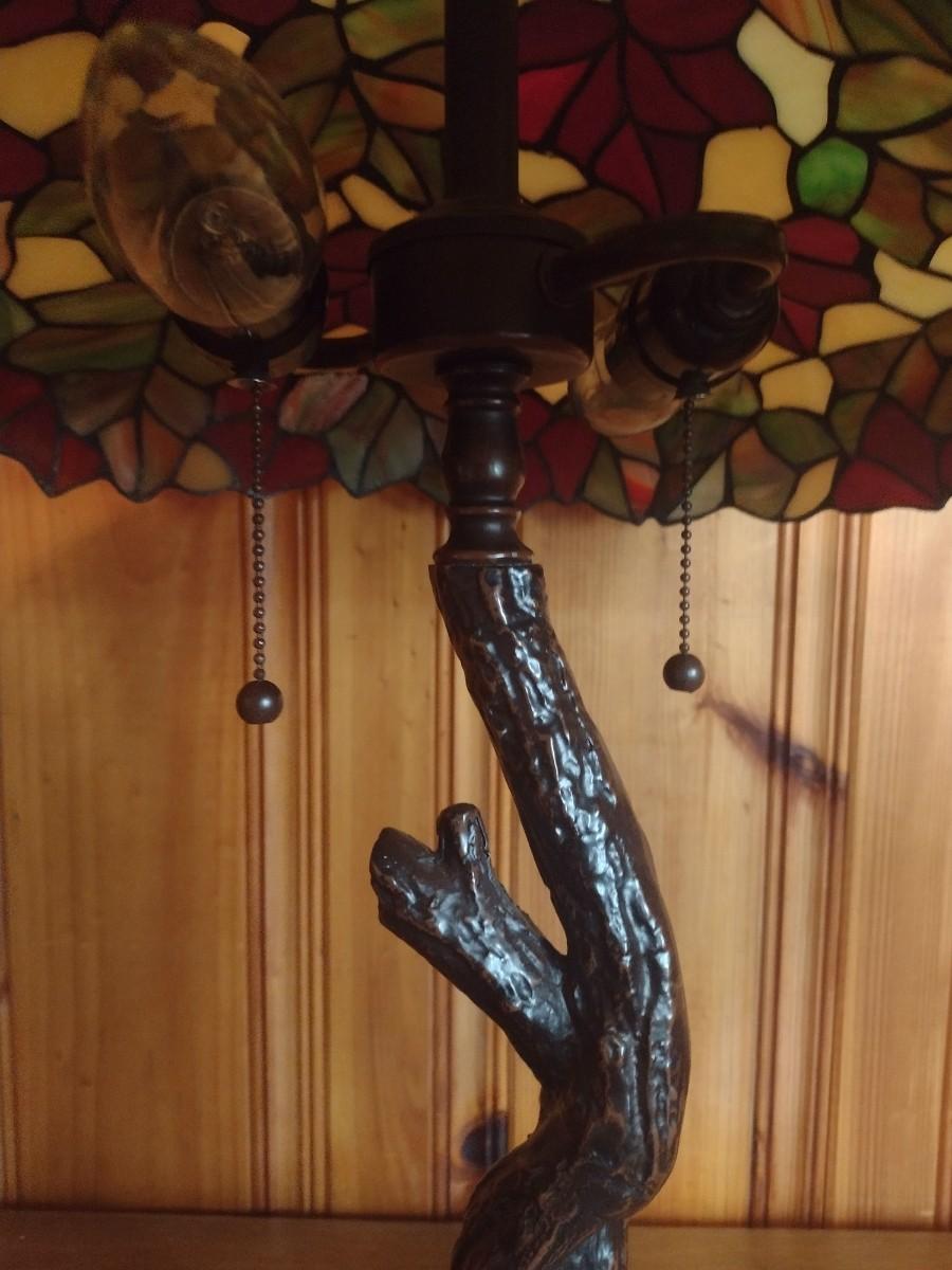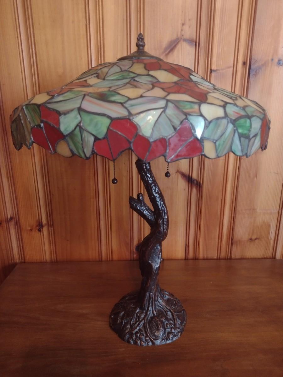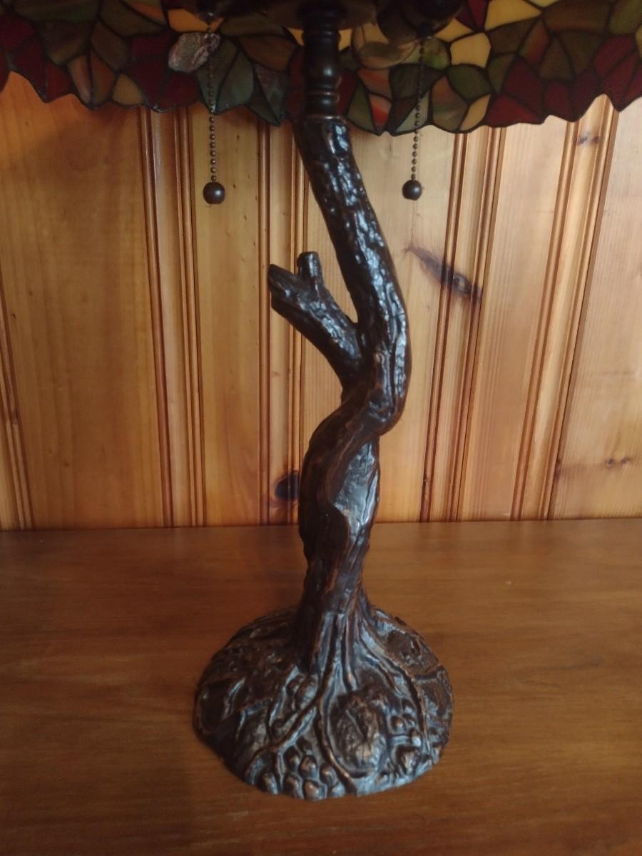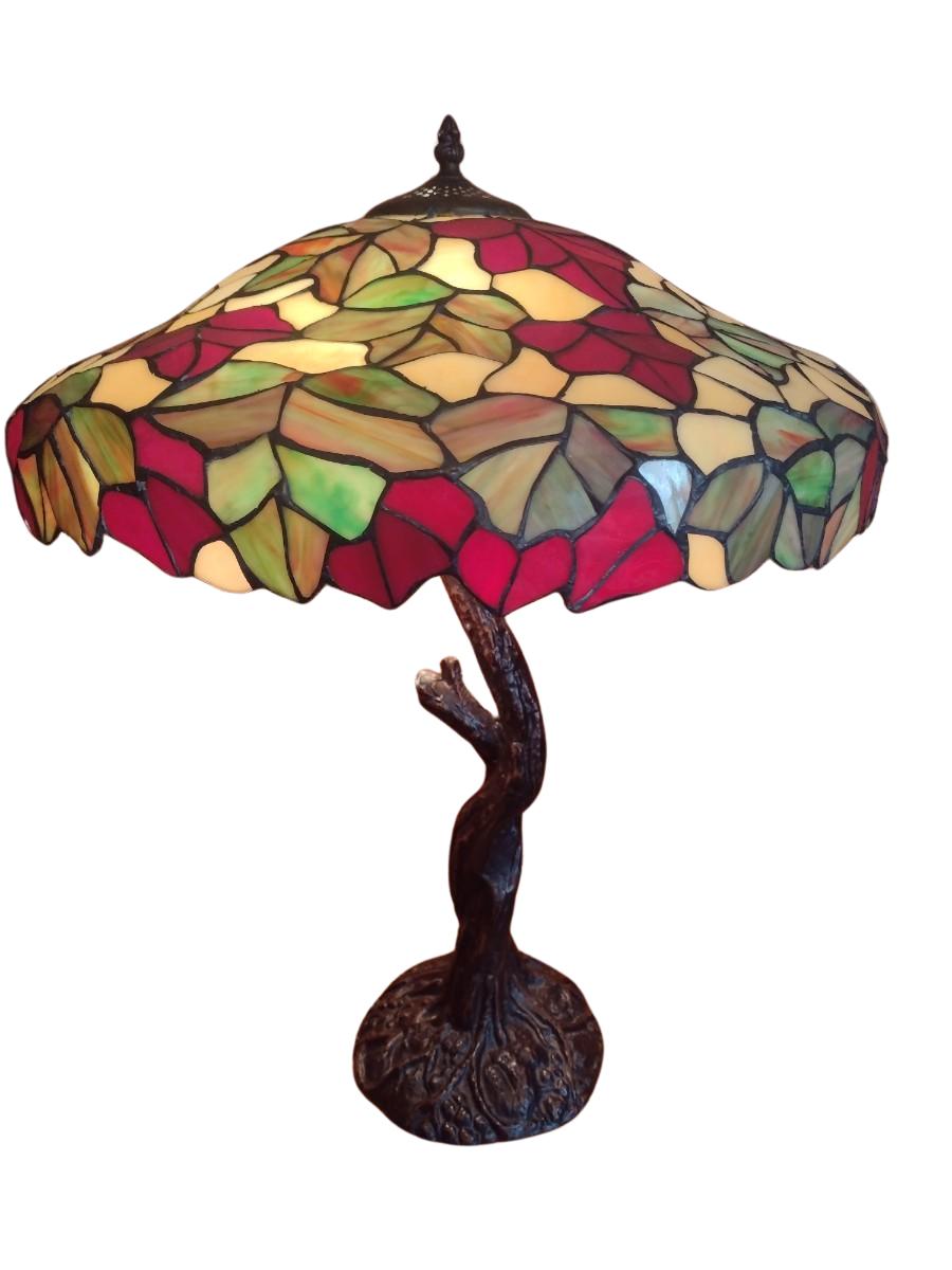 Tiffany Style Stained Glass Shade Table Lamp with Metal Tree Trunk Post Choice A