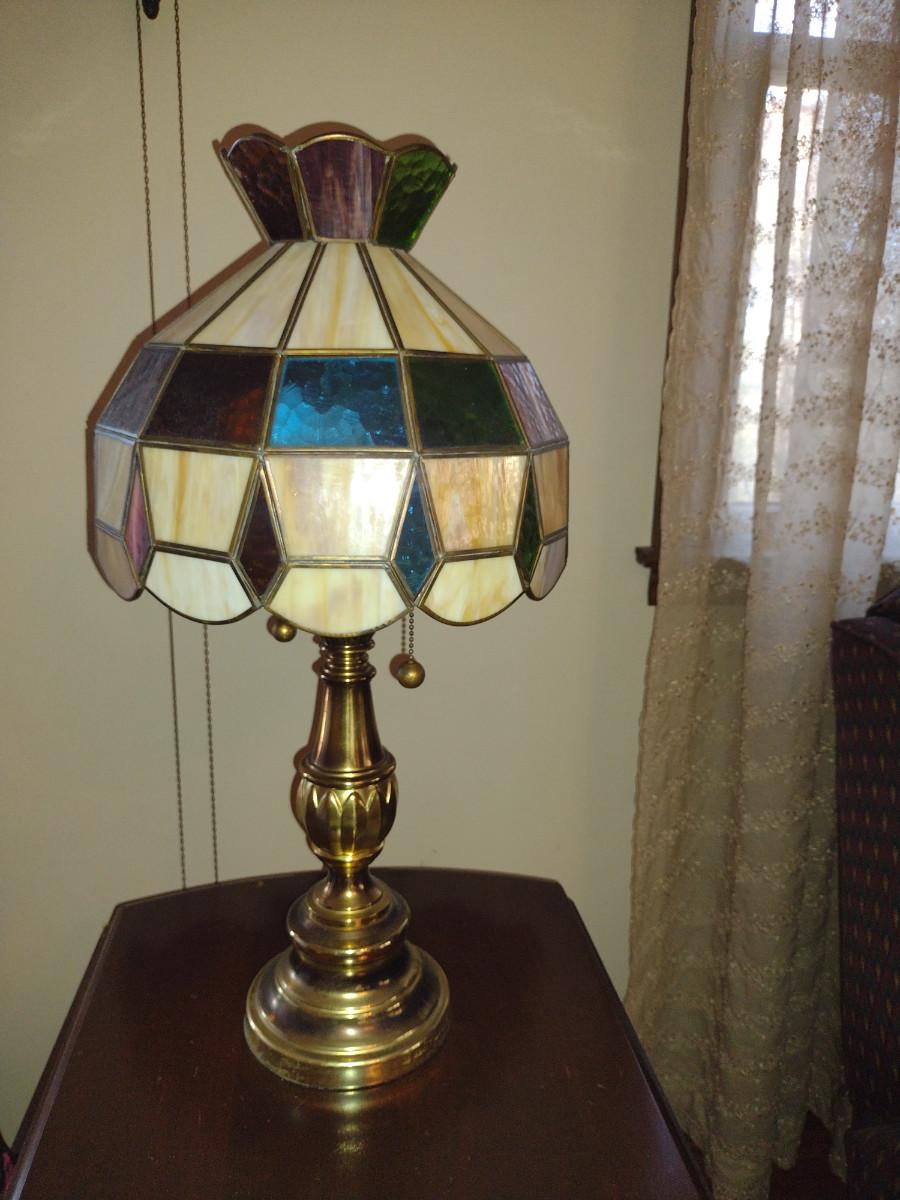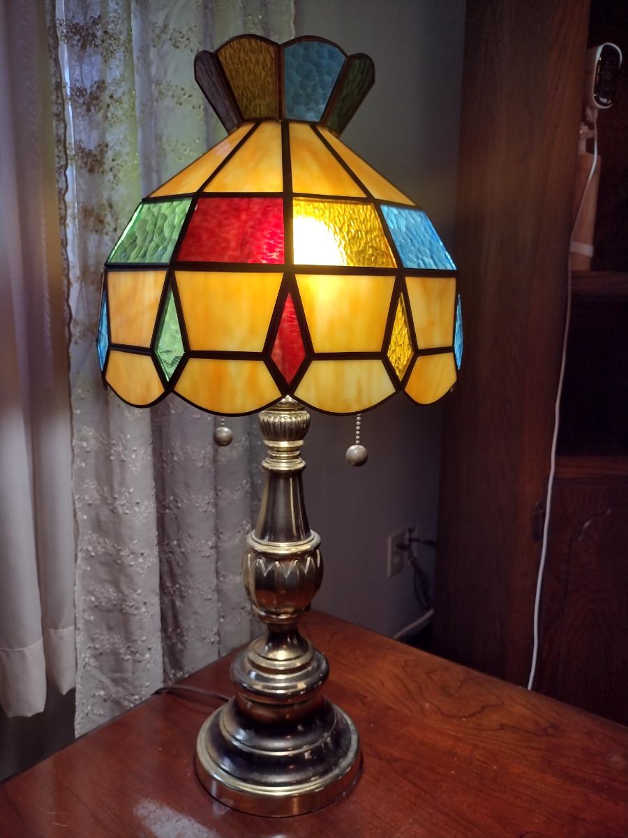 Tiffany Style Stained Glass Table Top Lamp (Choice B). Approx 24 1/4" tall.