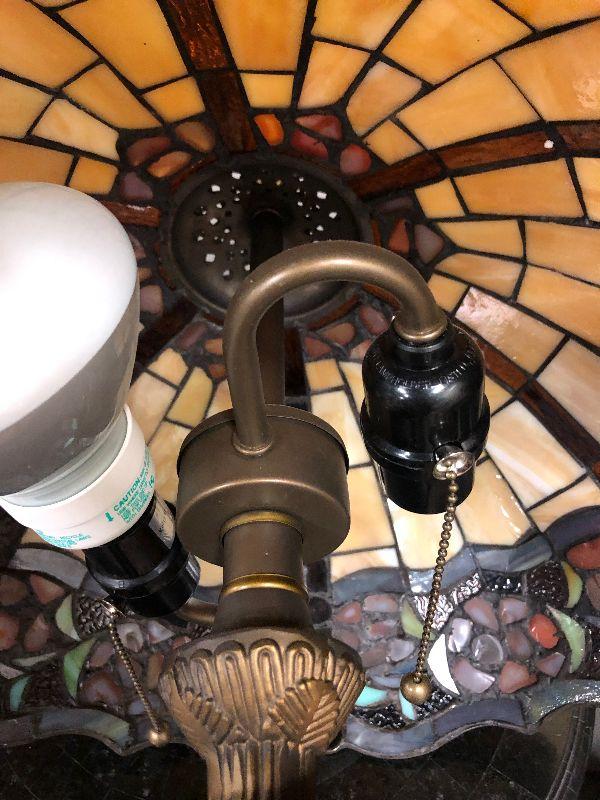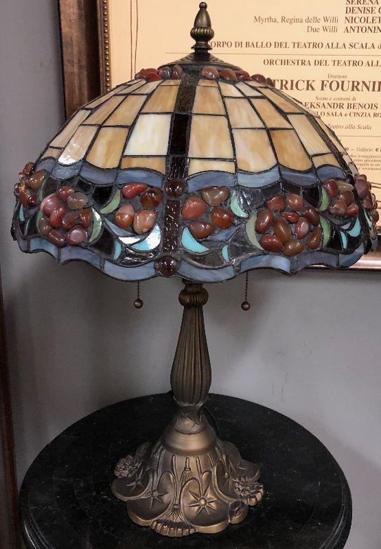 Perfect condition, Tiffany Style Meyda Lamp, stained glass shade 25" tall