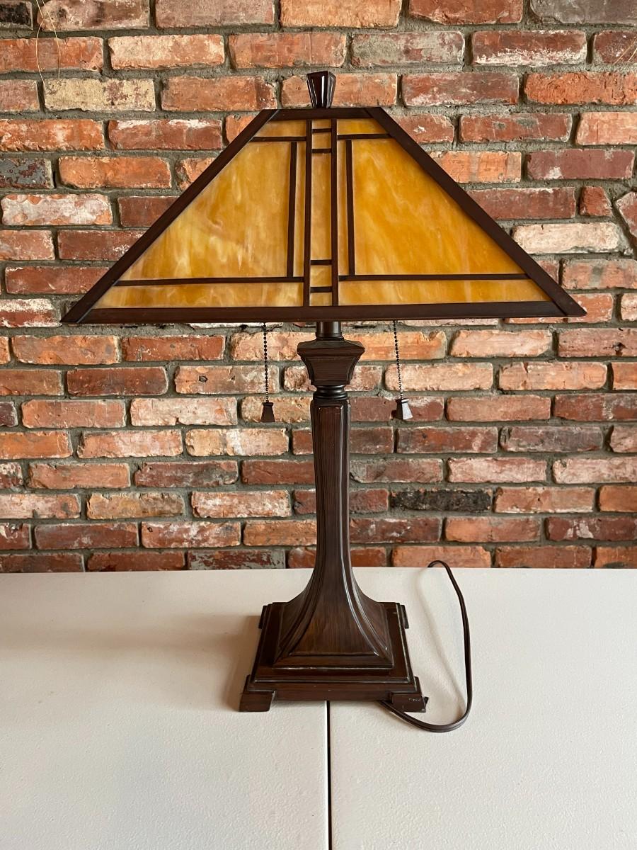 Shade and base are in very nice condition. In good working order. 15w(shade) x 25h