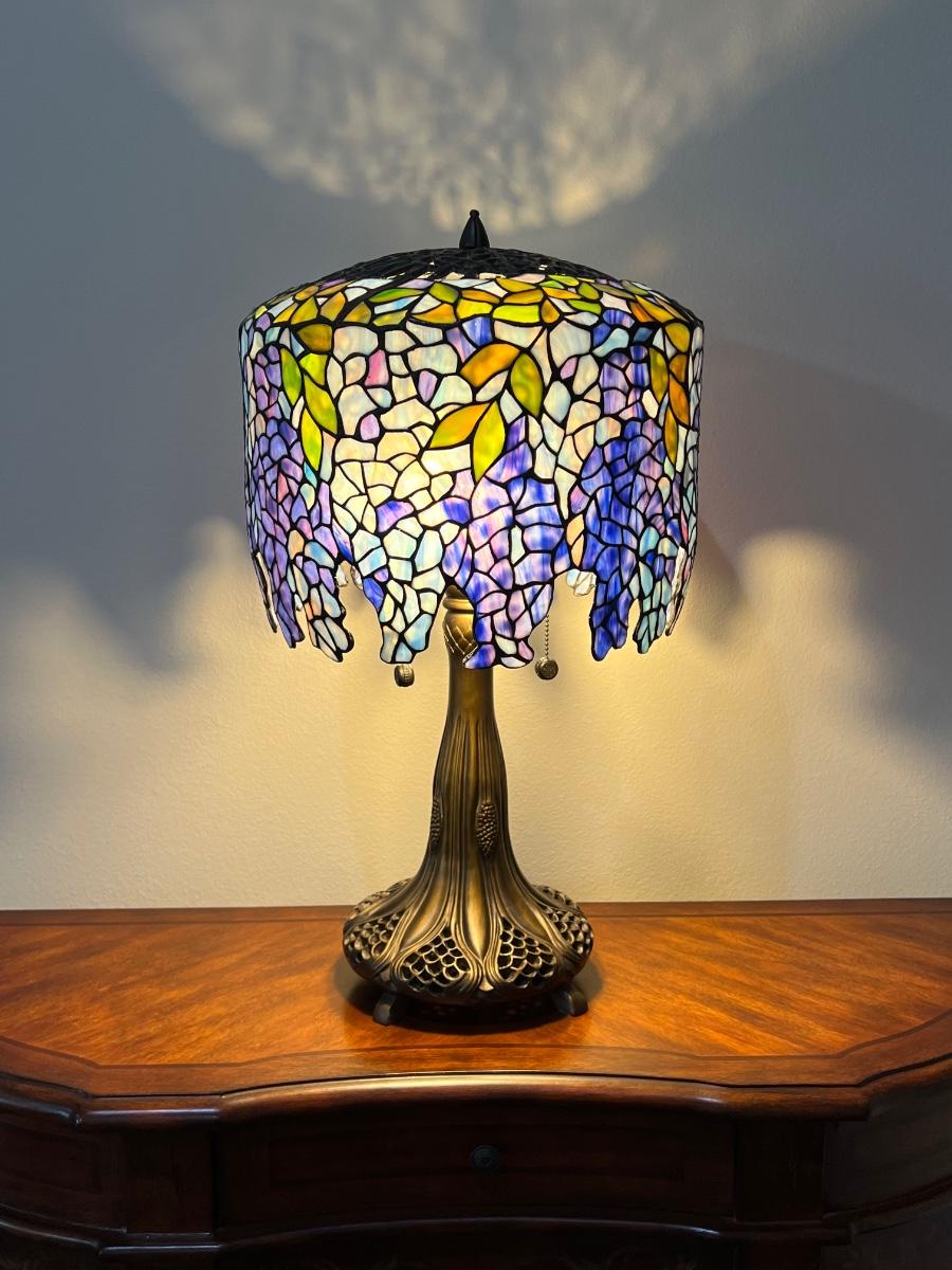 RPL ~ Wisteria Tiffany Style Table Lamp ~ Large & Heavy