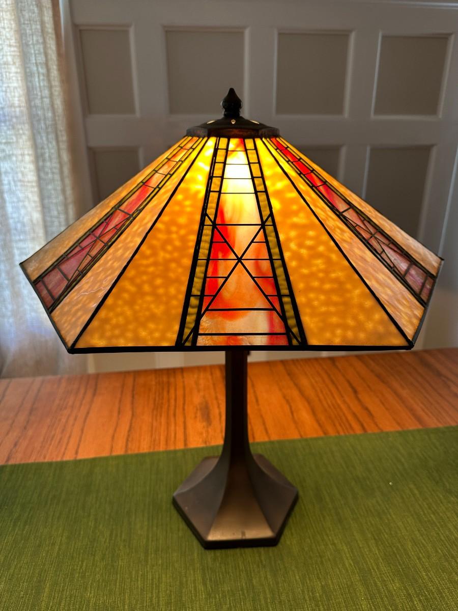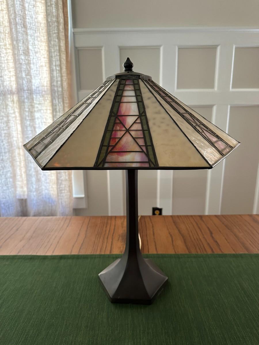 Dark Bronze color Base w/6-sided Shade. Approx. 24"h, Shade is approx. 21"w