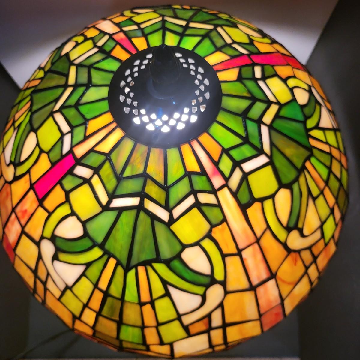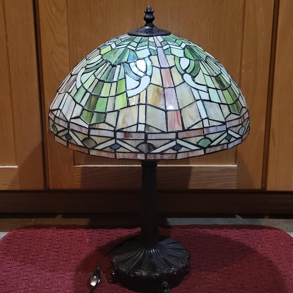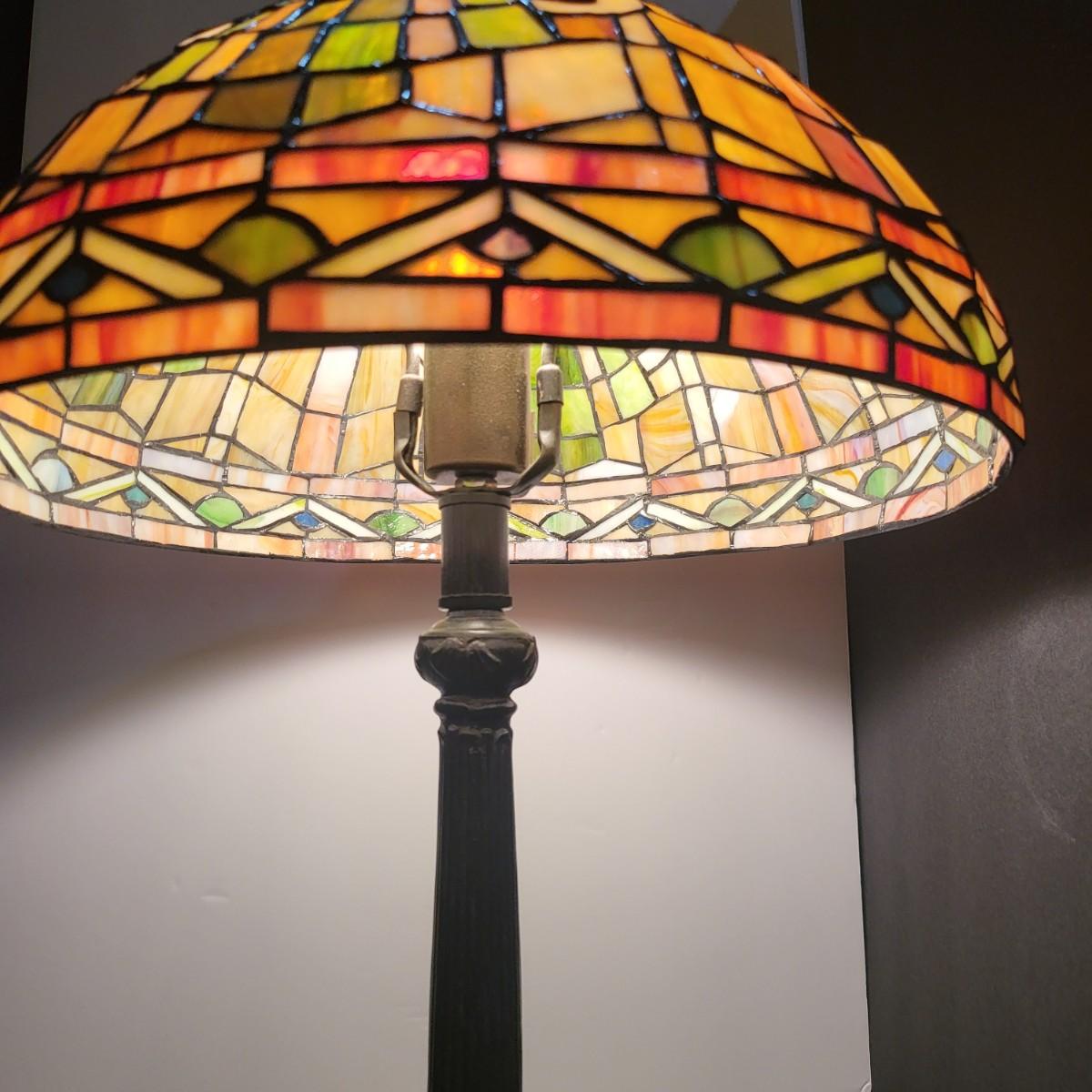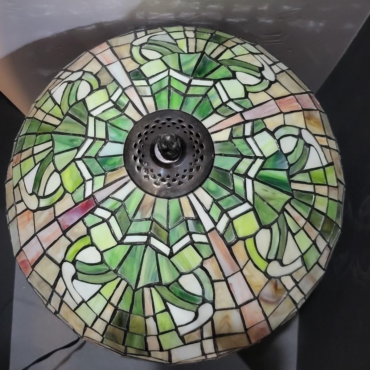 14" x 9" lamp shade. 21" T and 6.5" diameter base.