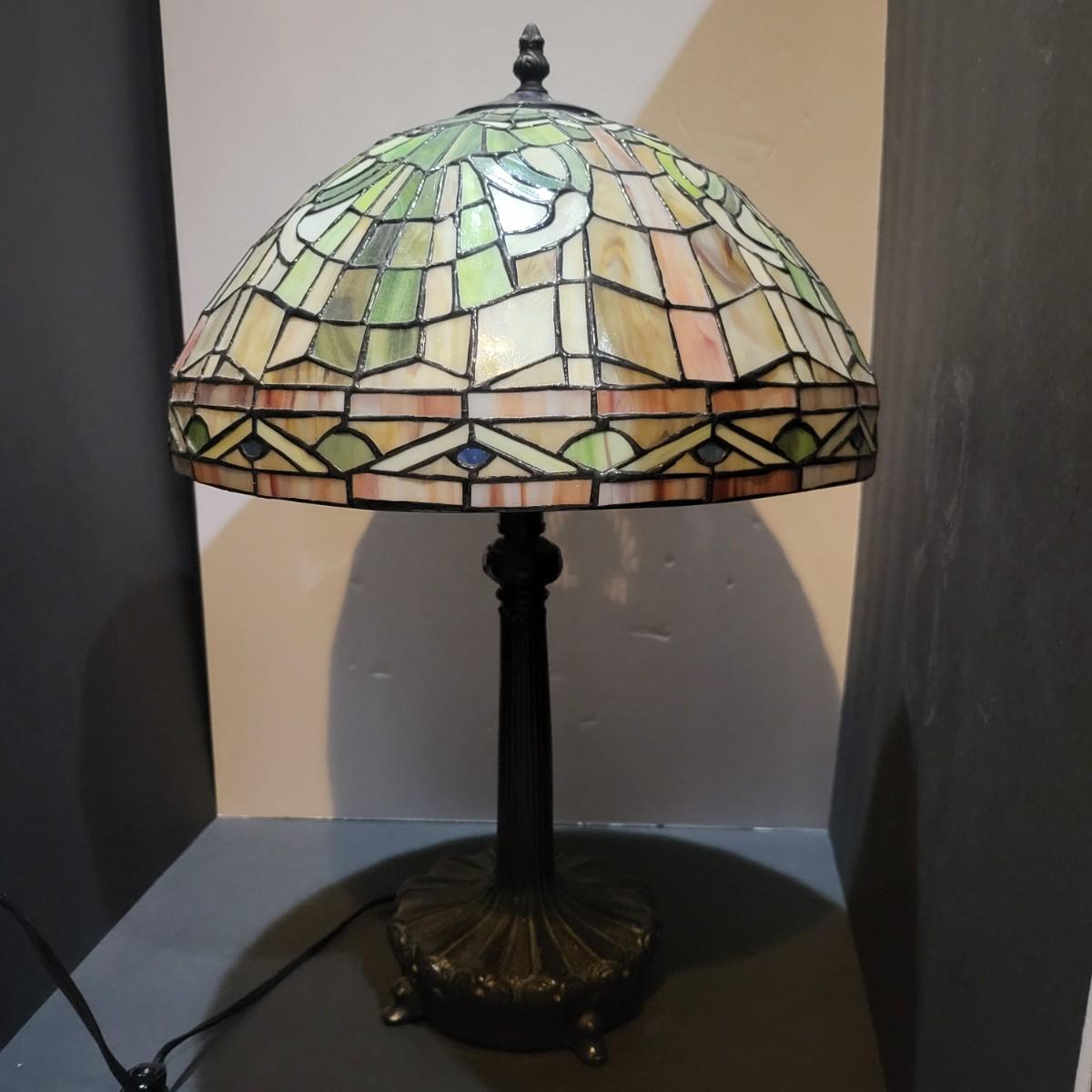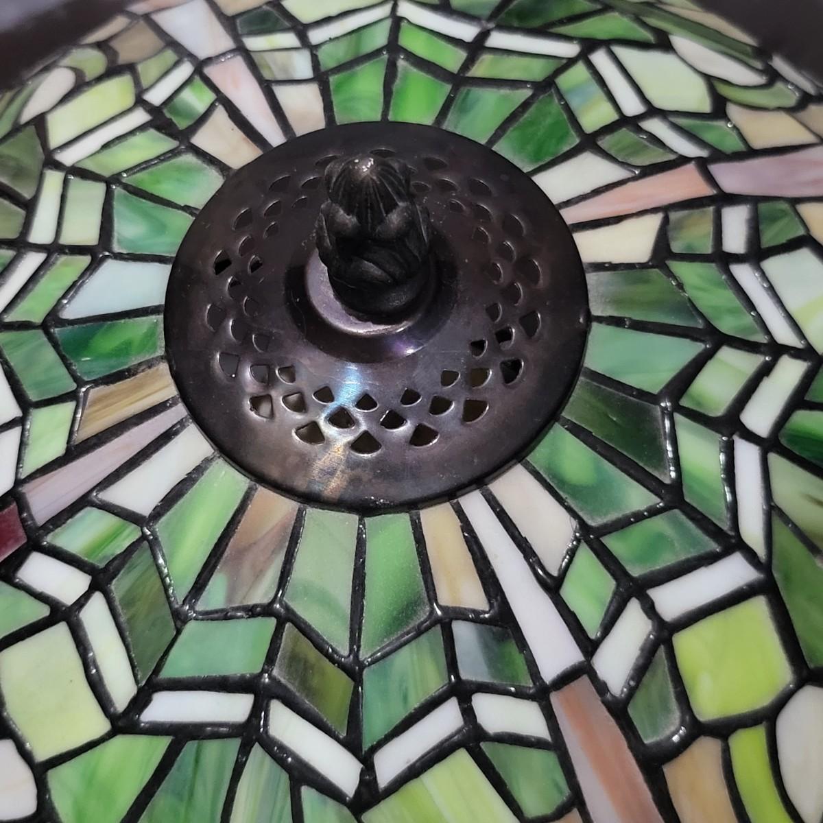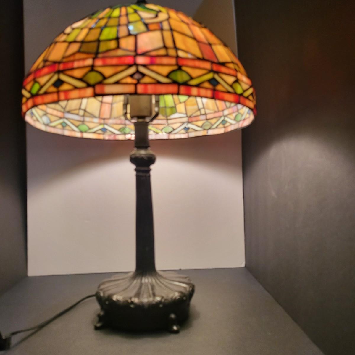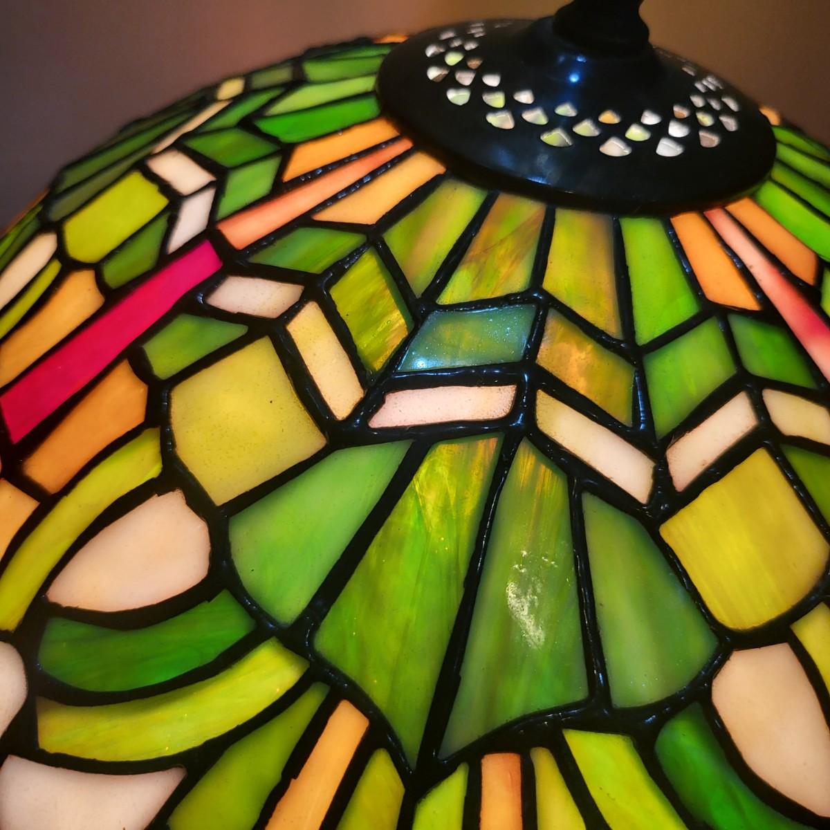 14" x 9" lamp shade. 21" T and 6.5" diameter base.