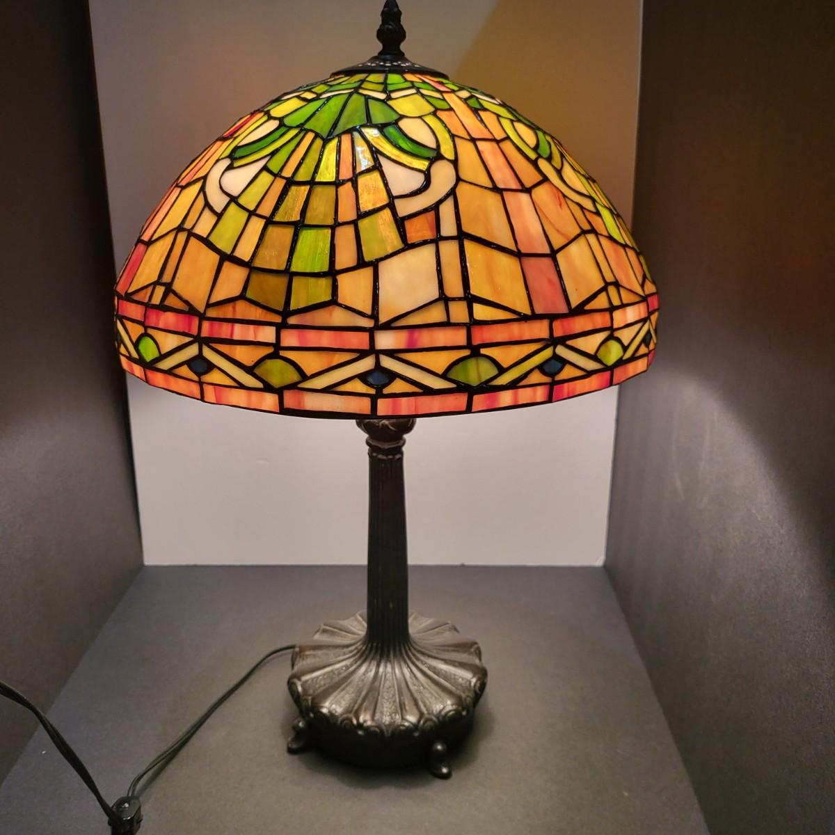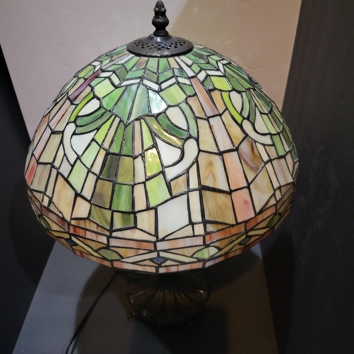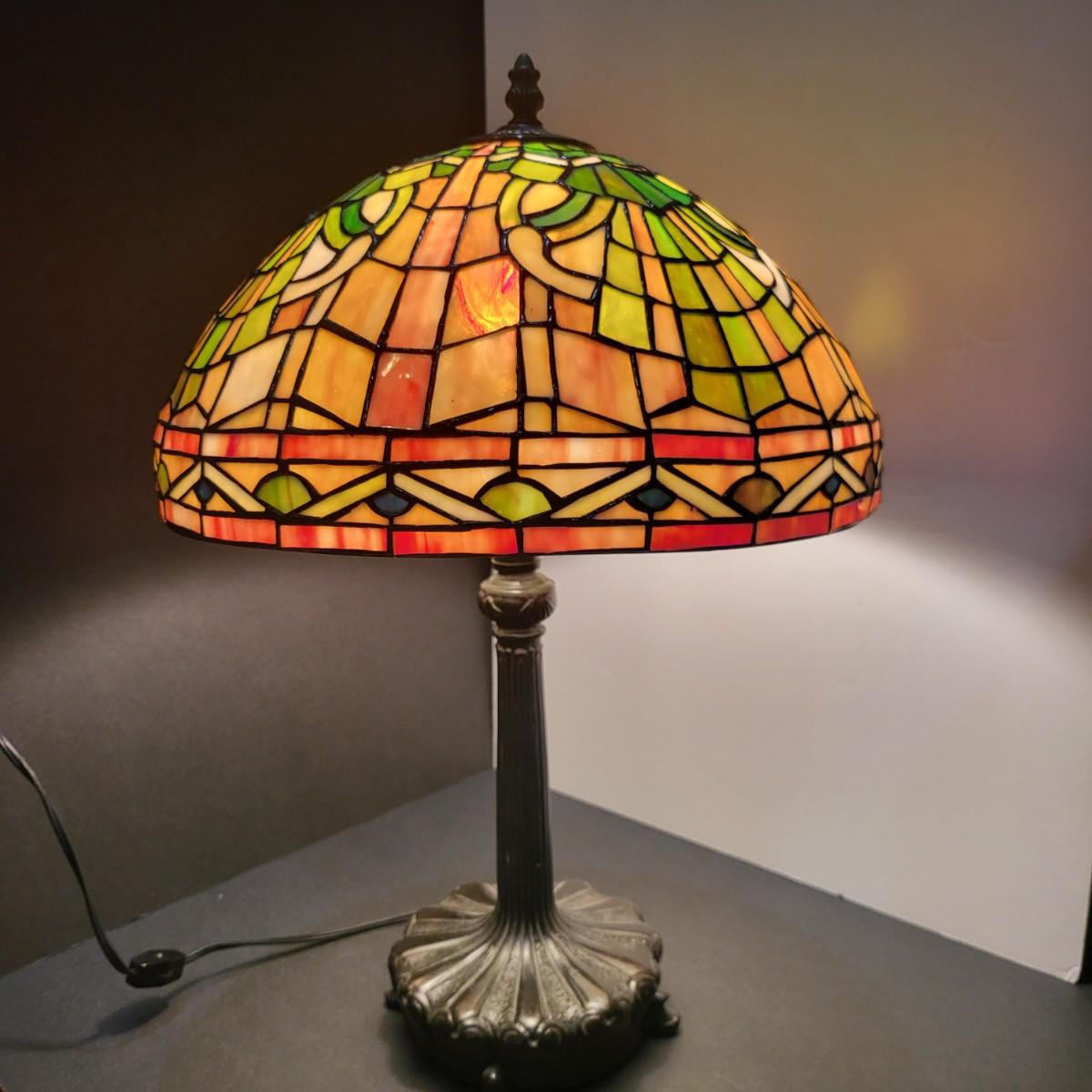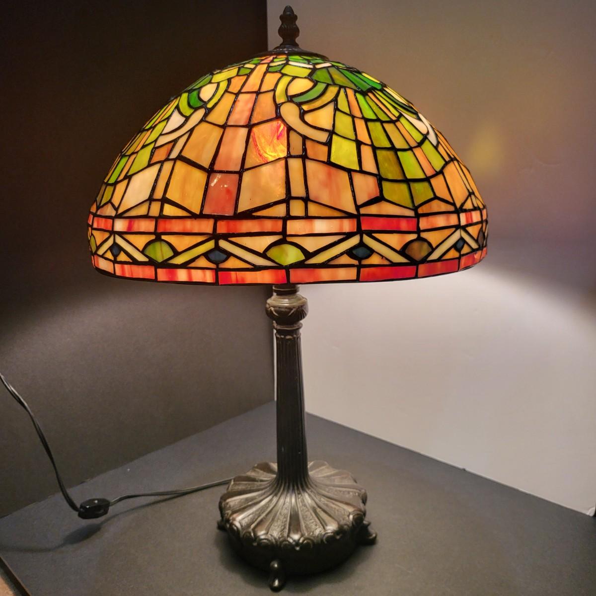14" x 9" lamp shade. 21" T and 6.5" diameter base.
