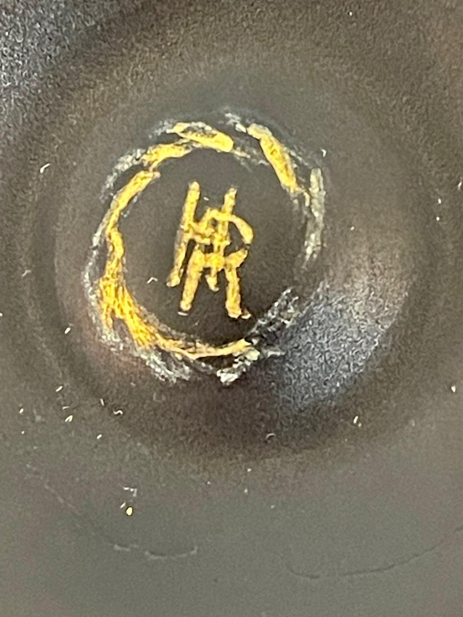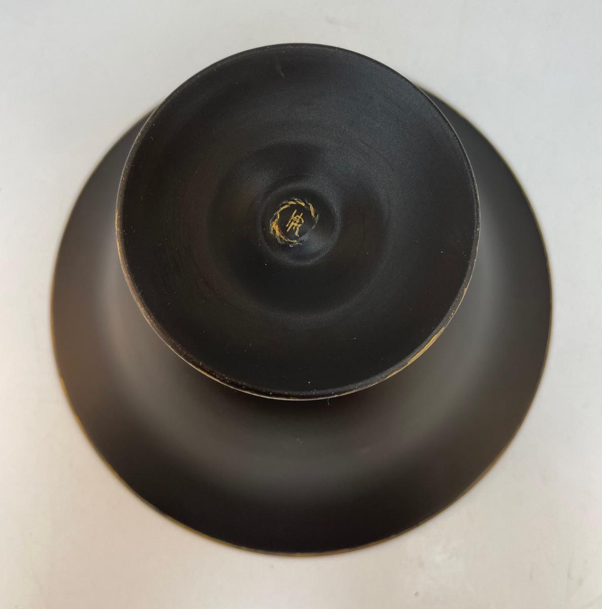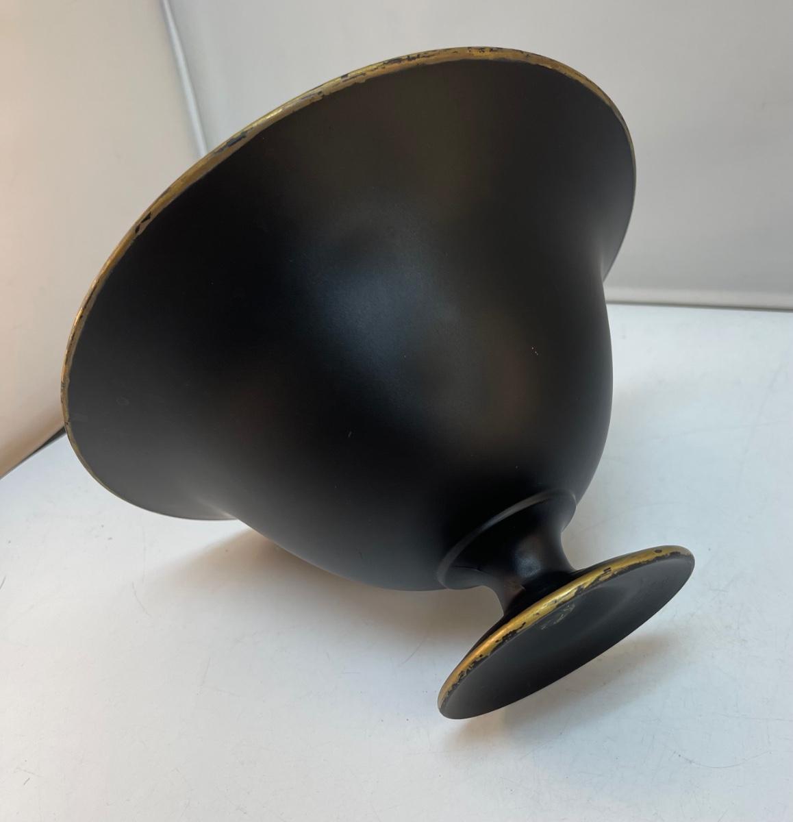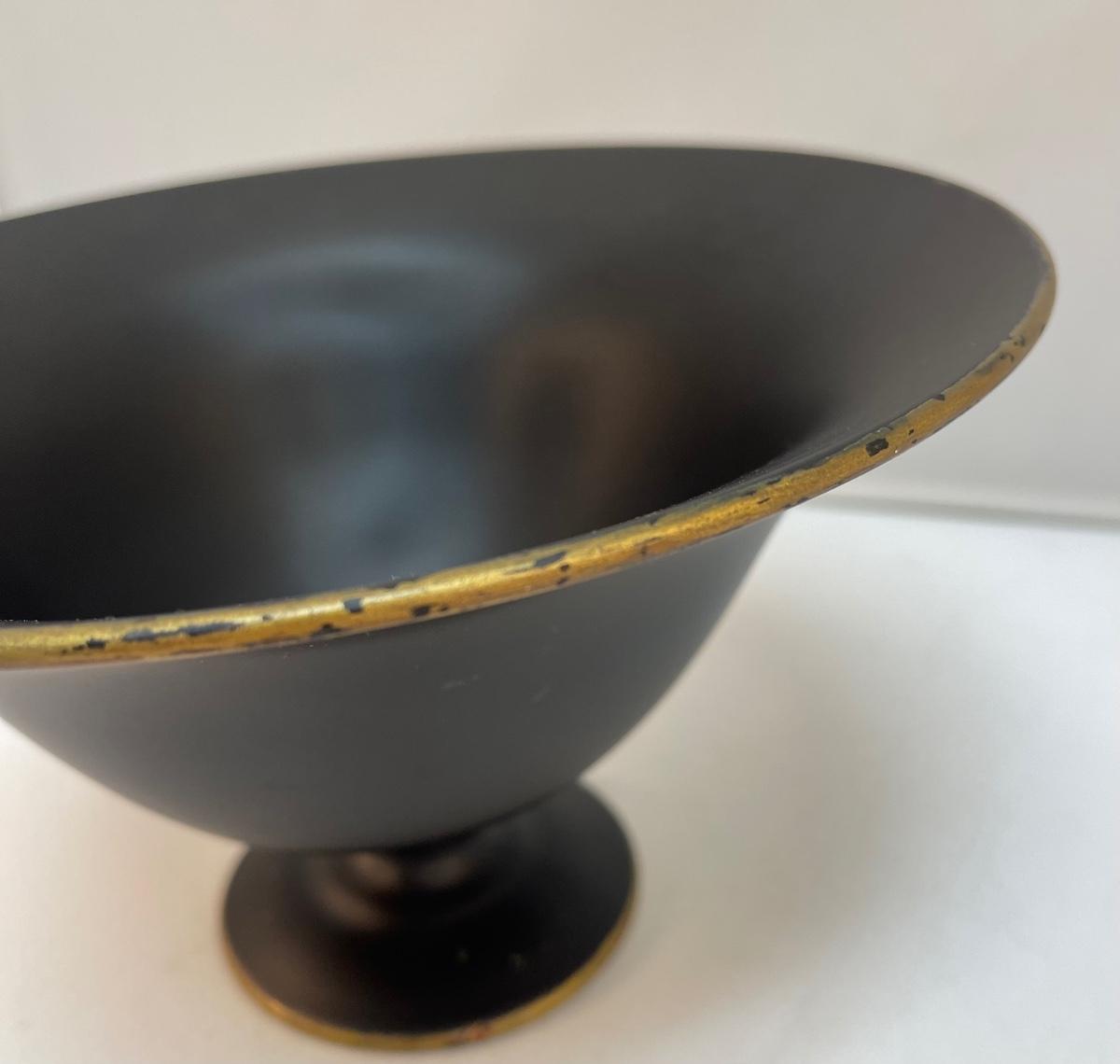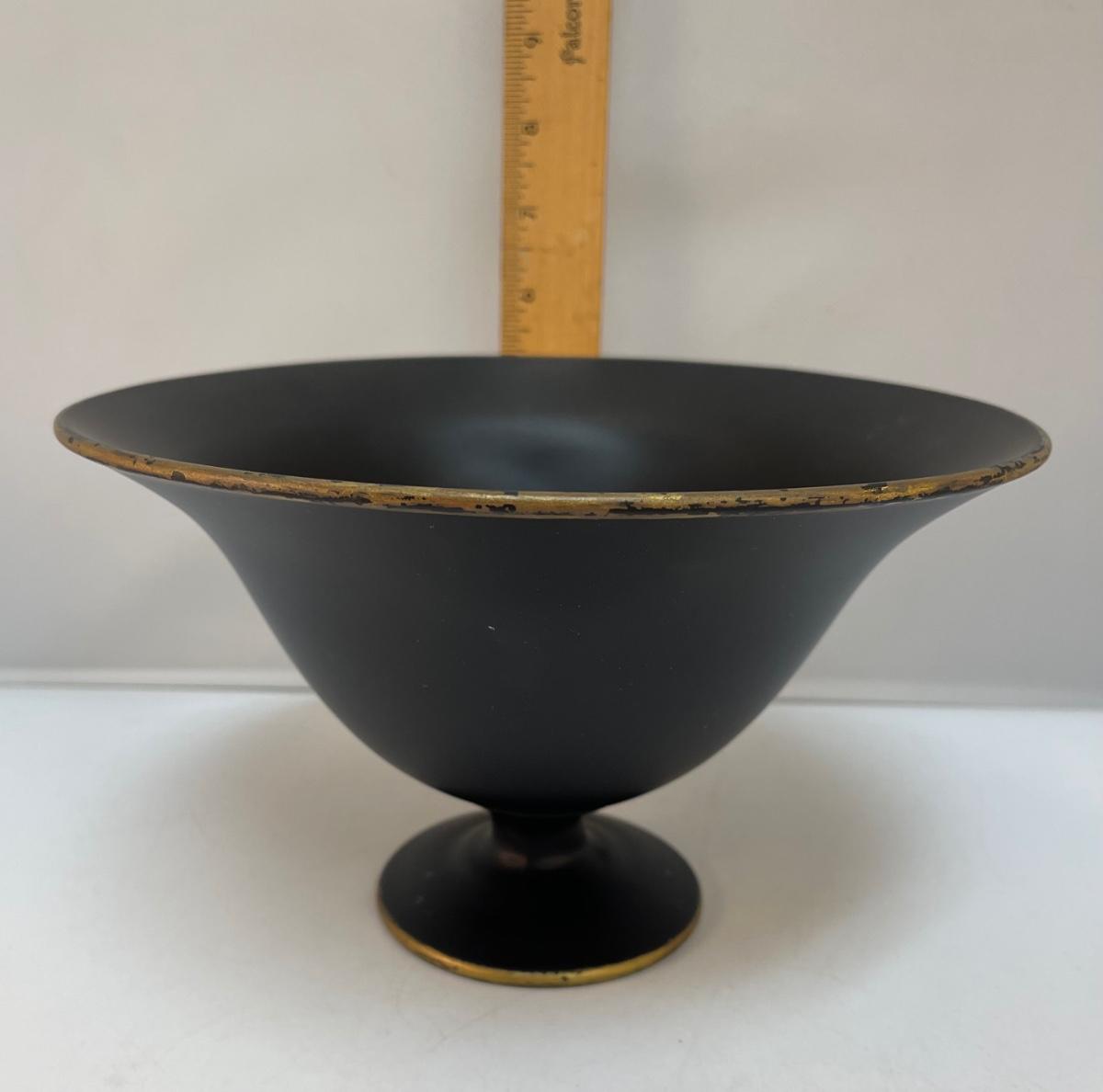 Antique Tiffin? Glass Black Satin with Gold Gilt Vase Pedestal Compote Console Bowl