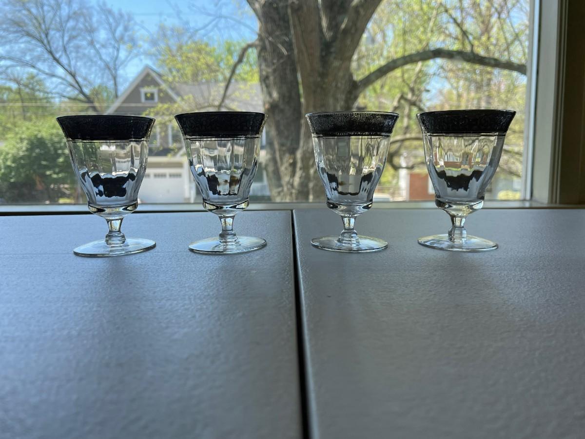 Tiffin-Franciscan Rambler Rose Clear Stem Tumbler / Cordial Glasses