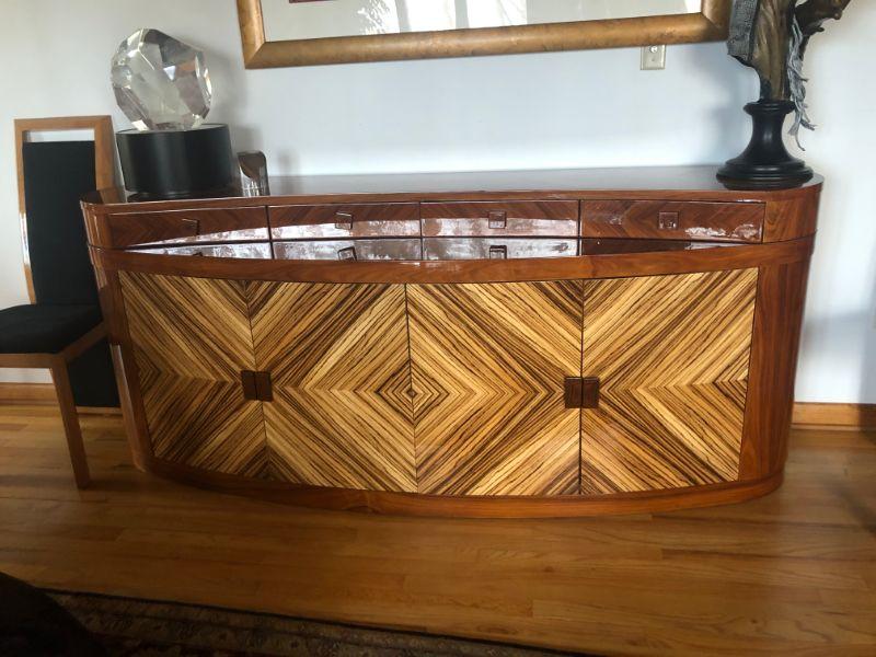 Tiger and Zebra Wood Table with Six Chairs and Matching Buffet