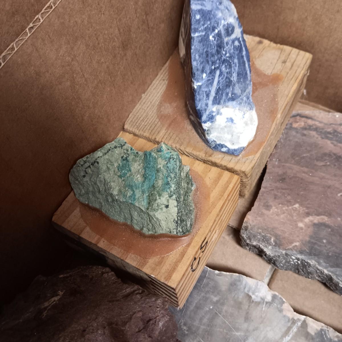 3 OF THE ROCKS ARE GLUED TO WOOD