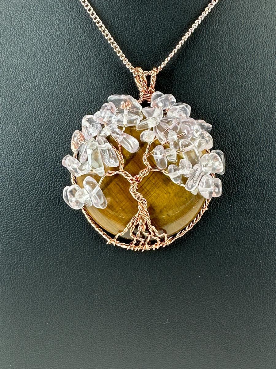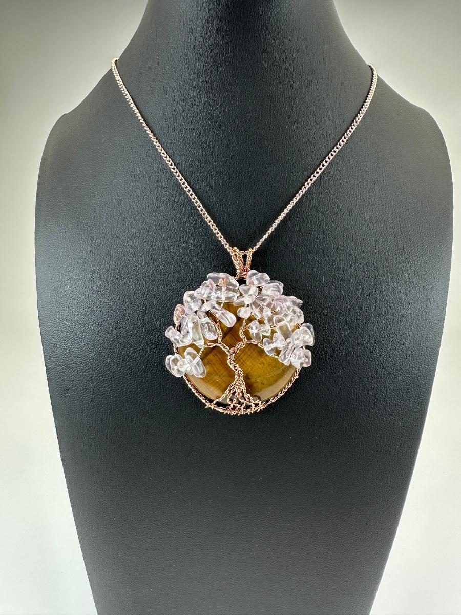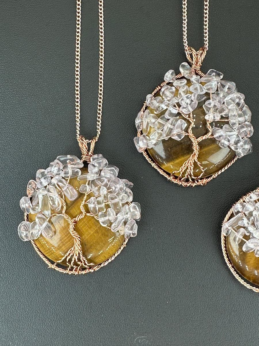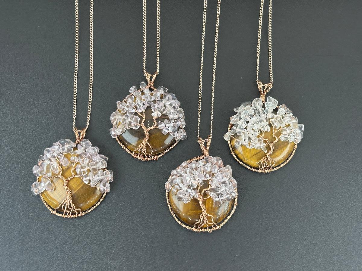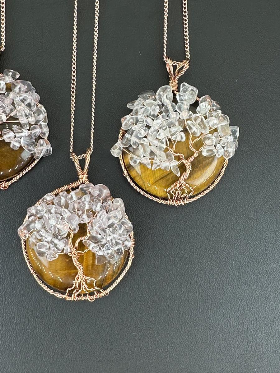 1. Tiger Eye Mix Gemstone Tree Of Life Necklace Lot