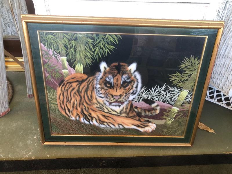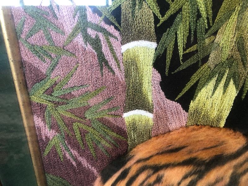 Professionally framed and matted in Ventura California it’s a combination of fake fur and handstitching to make the bamboo it’s actually quite interesting