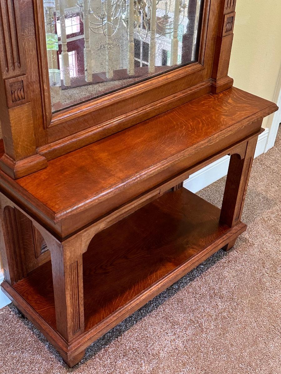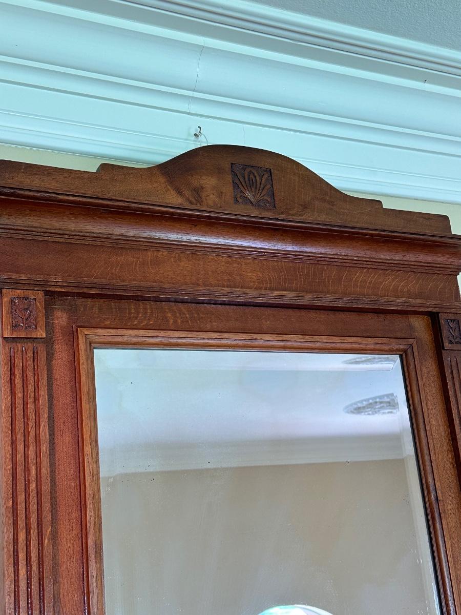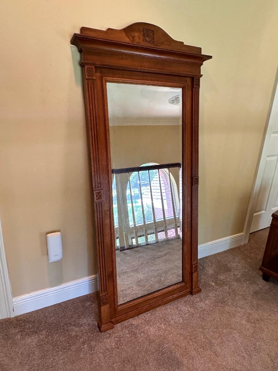 Beautiful Mirror ~ Mirror has some desilvering in Mirror as seen in photo ~ bottom piece measures 23” H x 31” W x 12.75” D ~ Mirror = 66” H x 32” W ~ Mirror in photo is attached to wall so that the mirror does not fall forward
