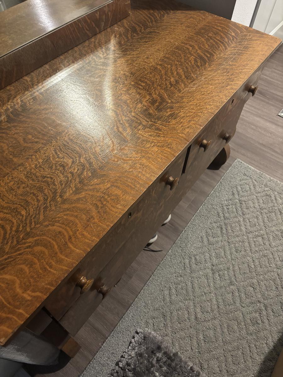 Beautiful tiger oak dresser and mirror in excellent condition.