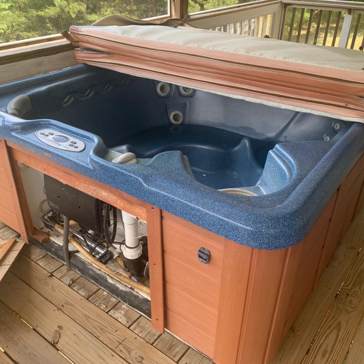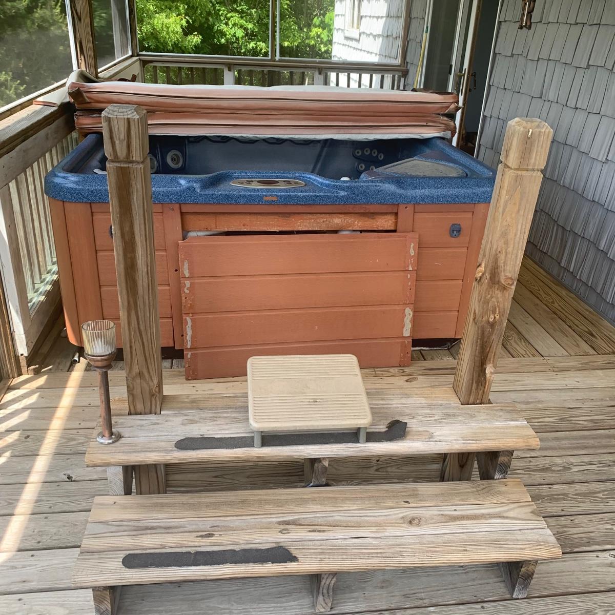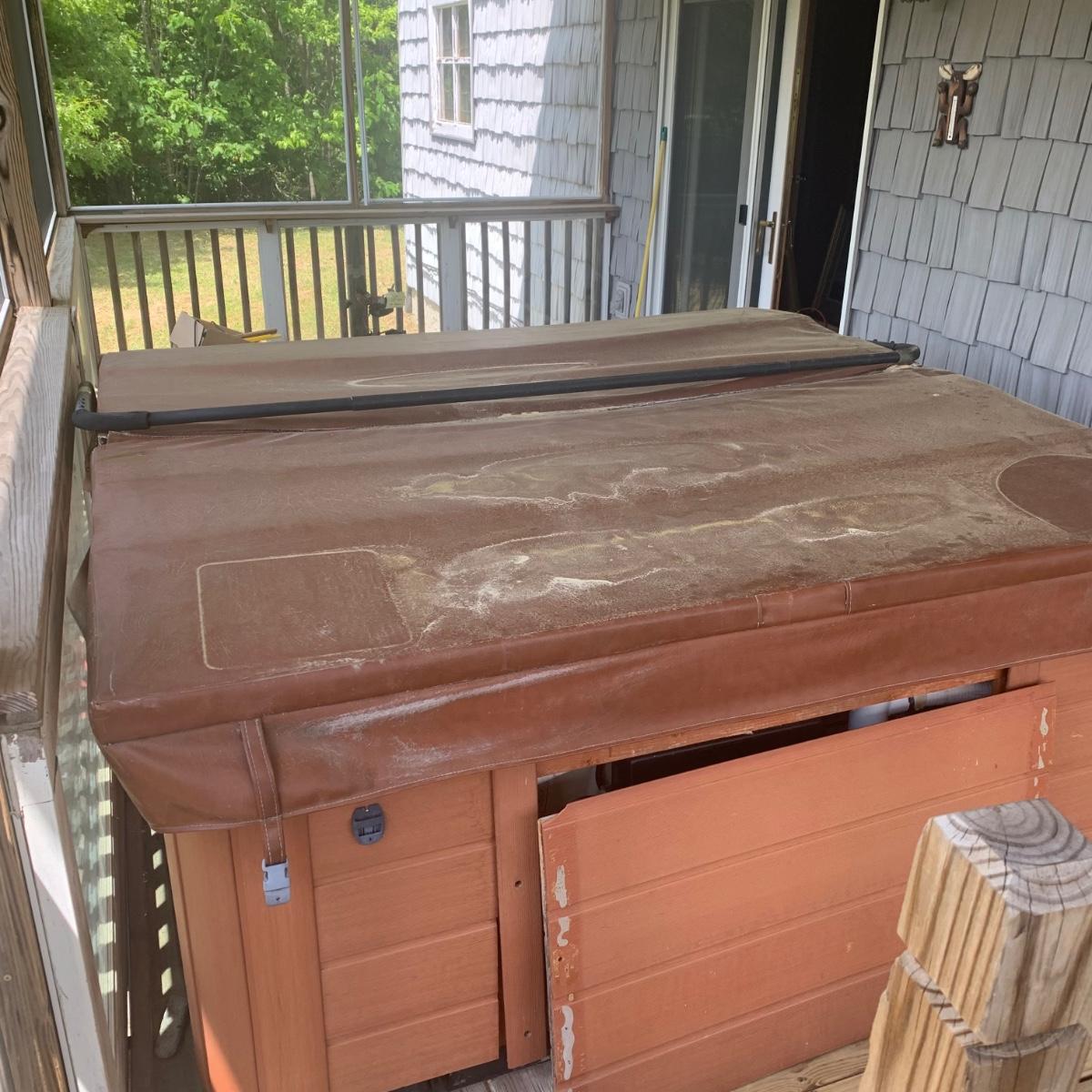 This spa is on a covered porch which was covered after placement of tub. You are welcome to any pieces of it prior to destruction for removal. This is on 2nd floor deck. You will have to remove pieces disassemble electrical yourself or have an expert do it. Wire caps must be placed on loose wires left. No damage to porch structure. Please come