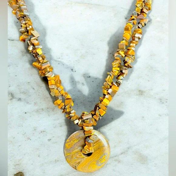 Tiger's Eye Chip Beaded Necklace and Pendant