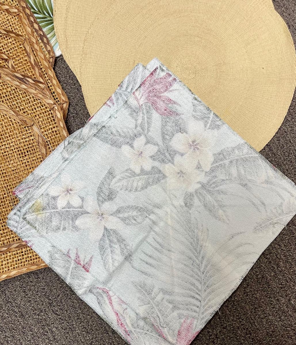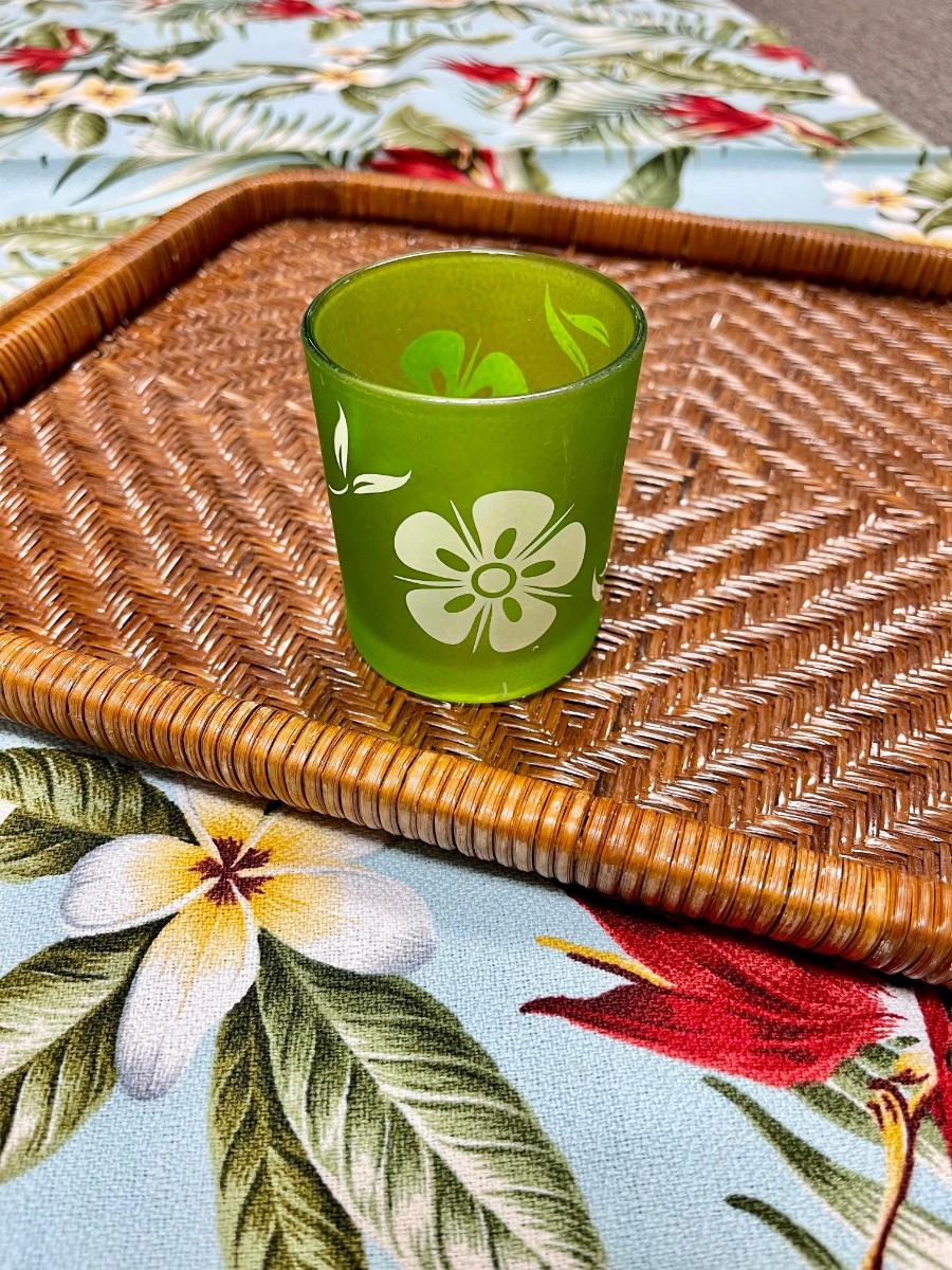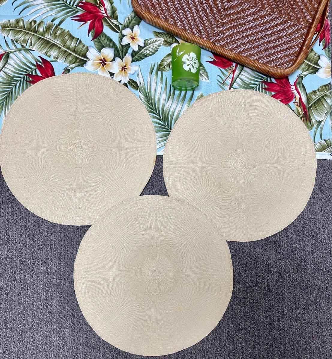 Tiki luau decor, ““ tropical material, placemats, basket, candle holder