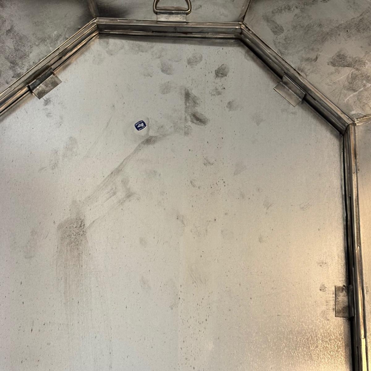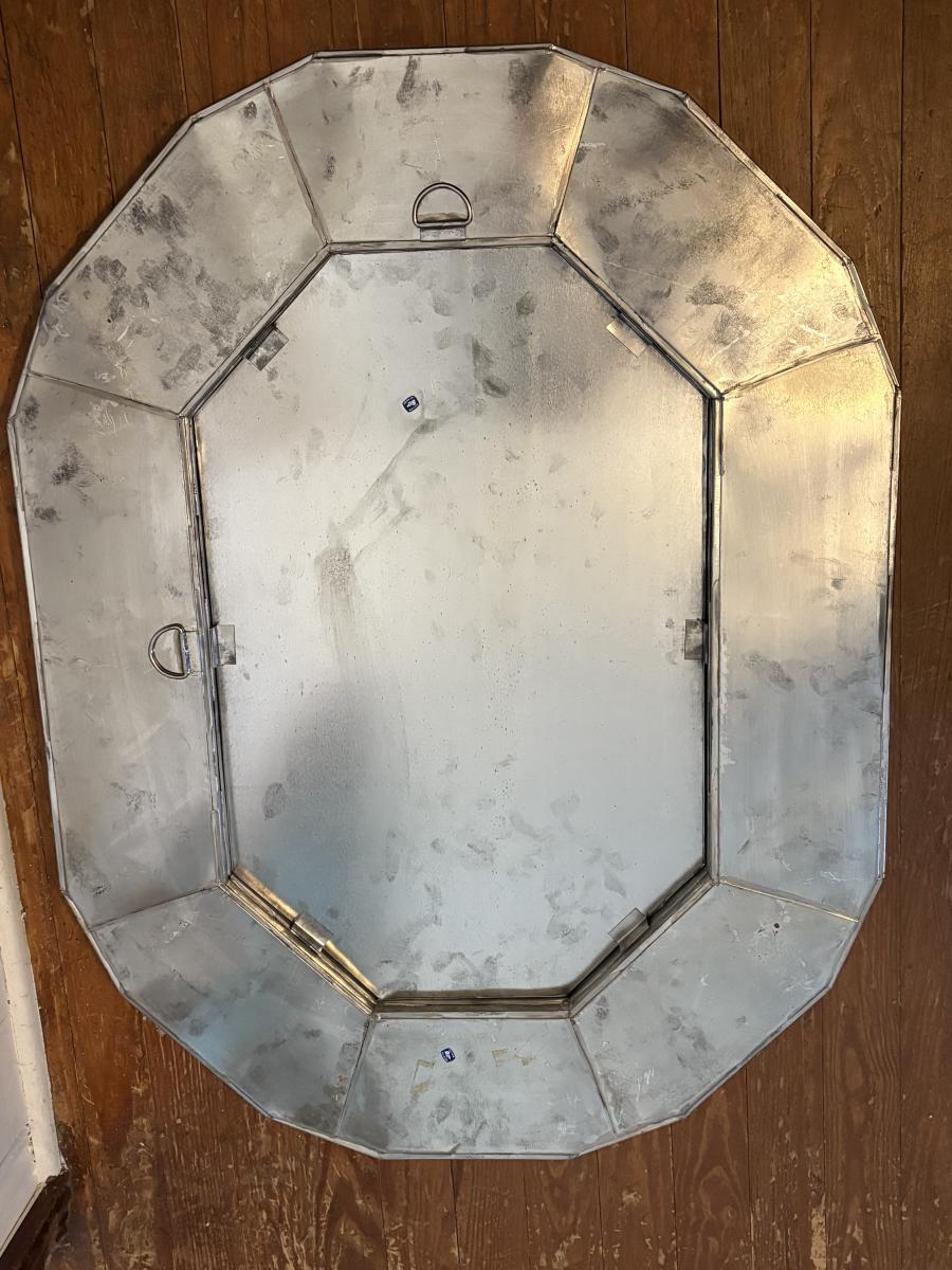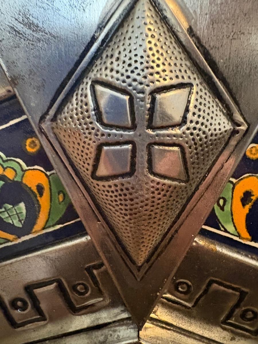 Unique mirror has a folk art feel and is labeled ‘hecho en Mexico’. It measures 33.5” x 25”H at widest points. Made from a lightweight metal and tiles. Shipping available. Shipping can be costly. We suggest contacting our preferred local shipping provider, Postage Express, with dimensions and getting an estimate before bidding: (828) 255-9250 or shipping@postageexpressnc.com.
