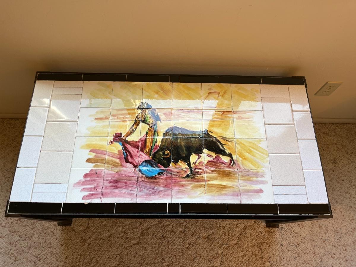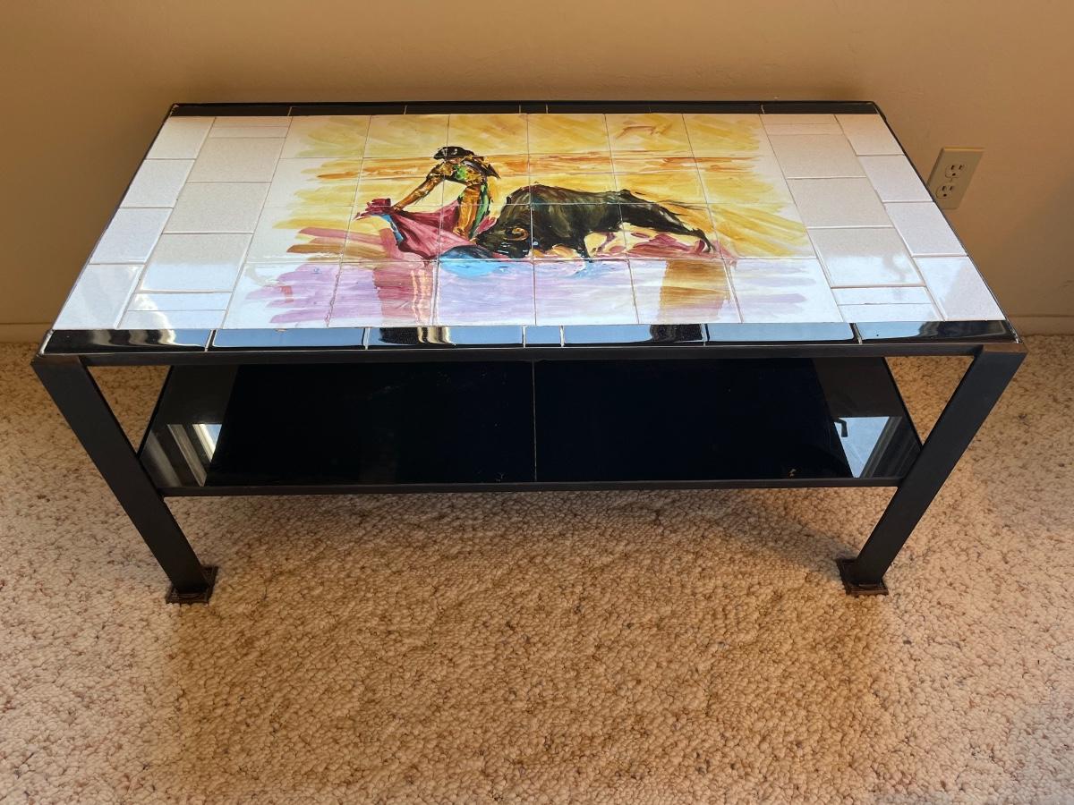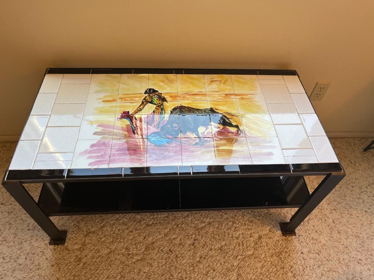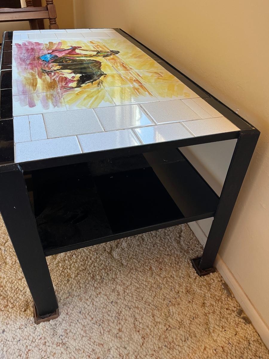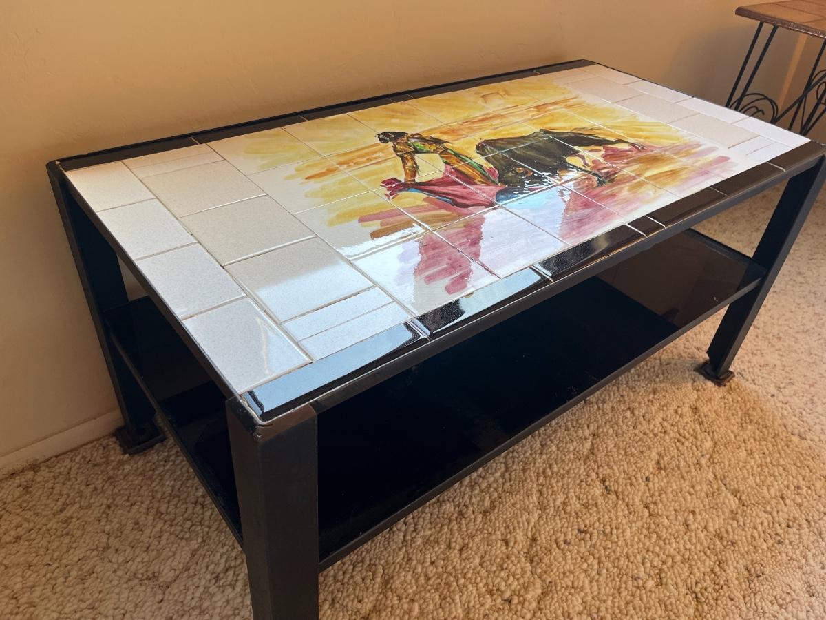 Tile Table with Shelf (40 1/2” L x 20” W x 19”H)
