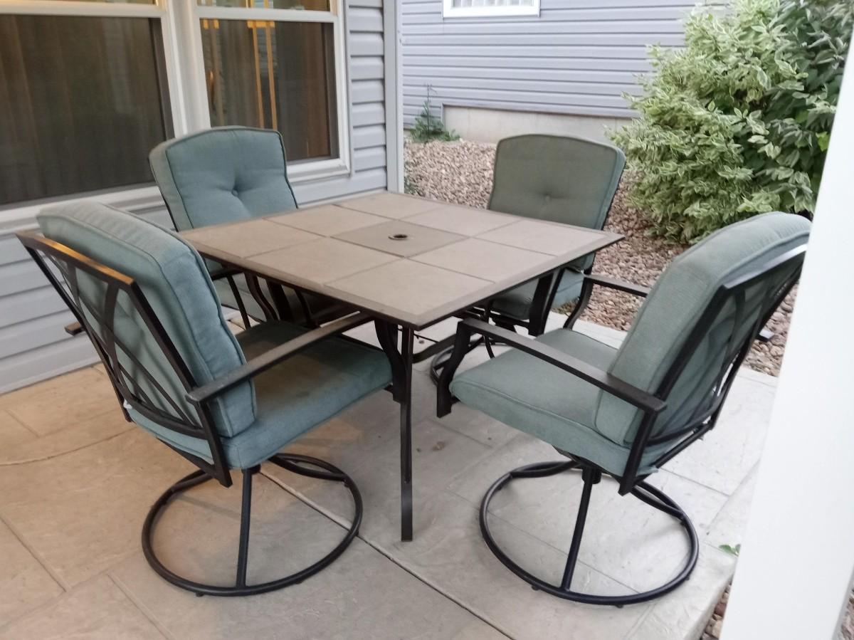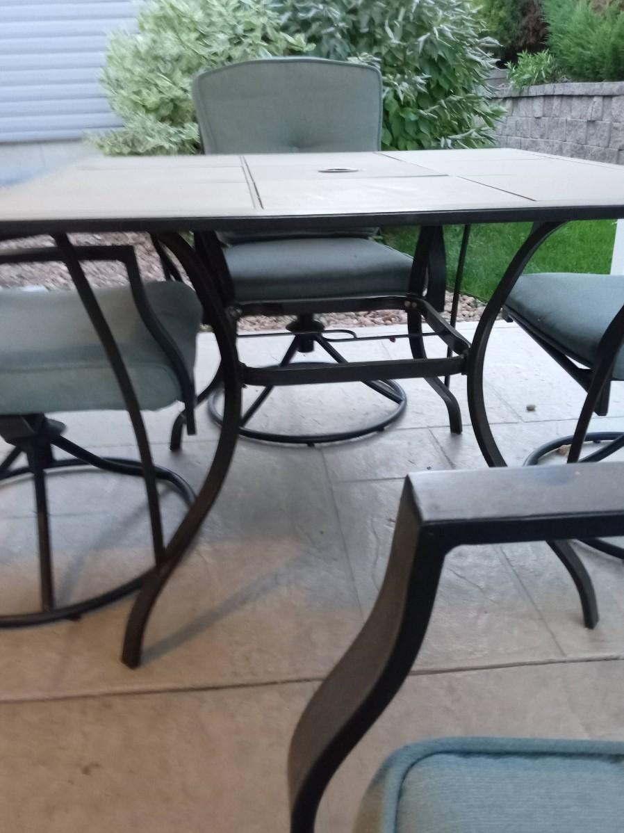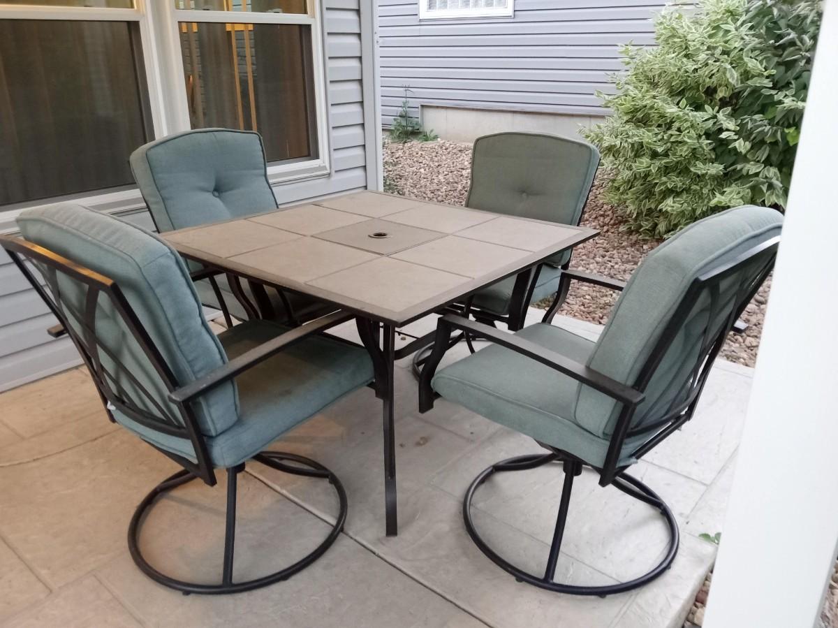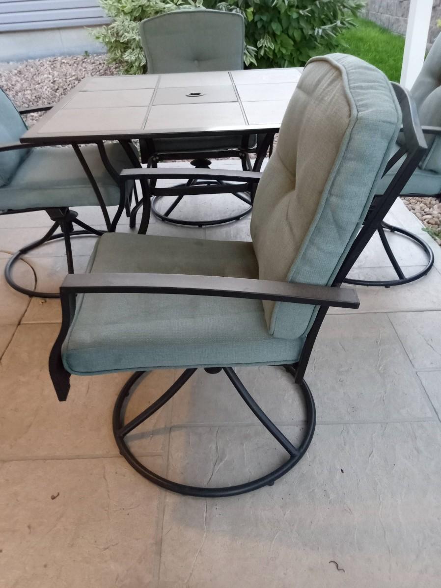 THE CUSHIONS HAVE BEEN LEFT OUT IN THE WEATHER AND NEED TO BE CLEANED BUT THEY ARE IN GOOD SHAPE