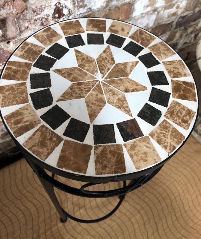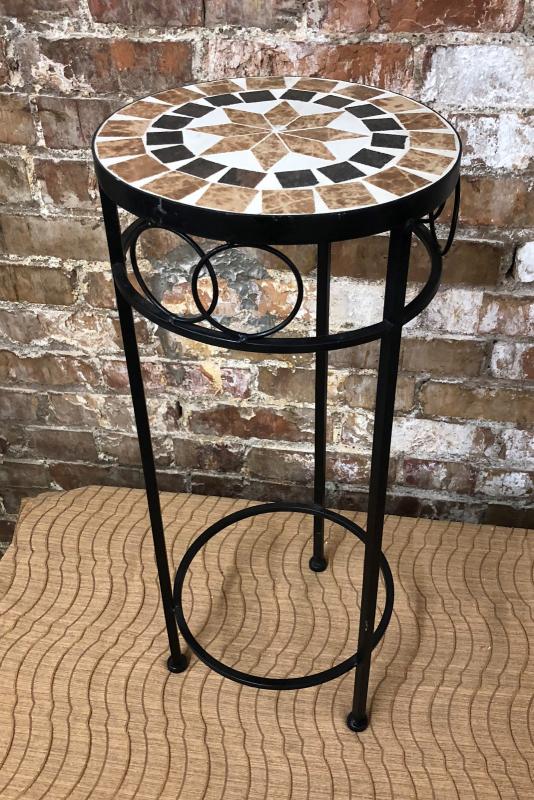 Excellent condition on this 24" tall wrought iron plant stand with an 8" tile top...