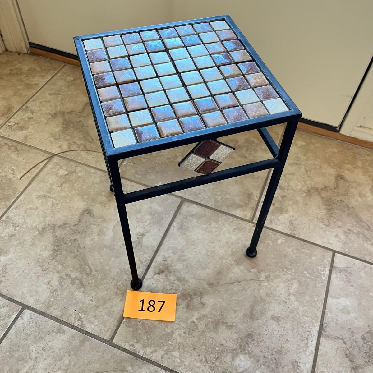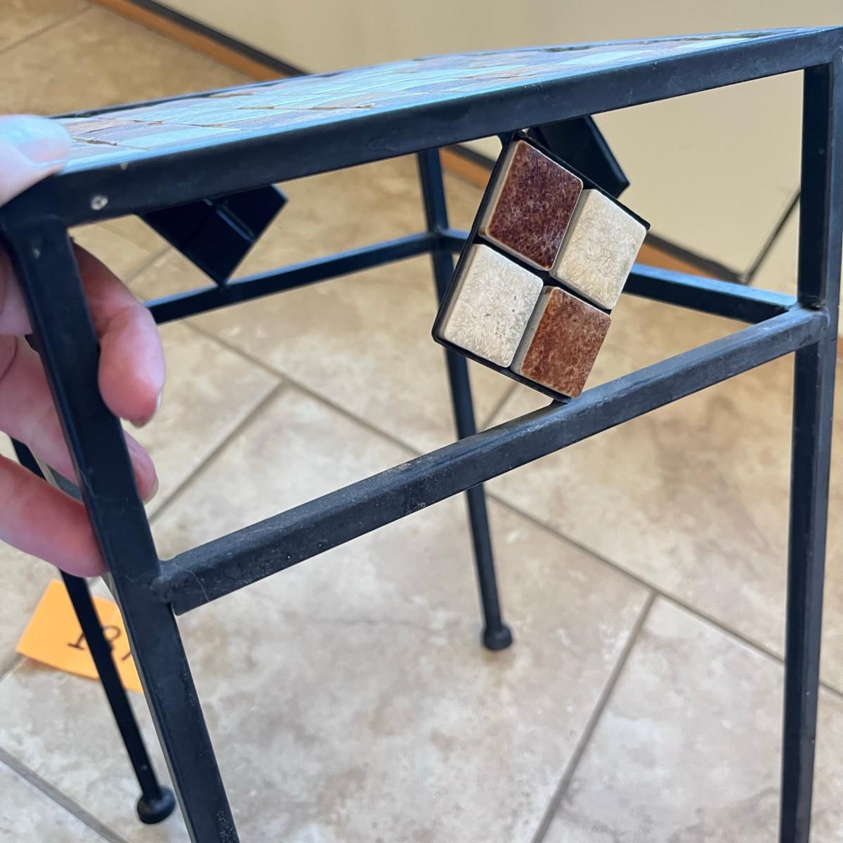 Very cool piece. Wrought iron & tile. Roughly 12x12 & 18" tall.
