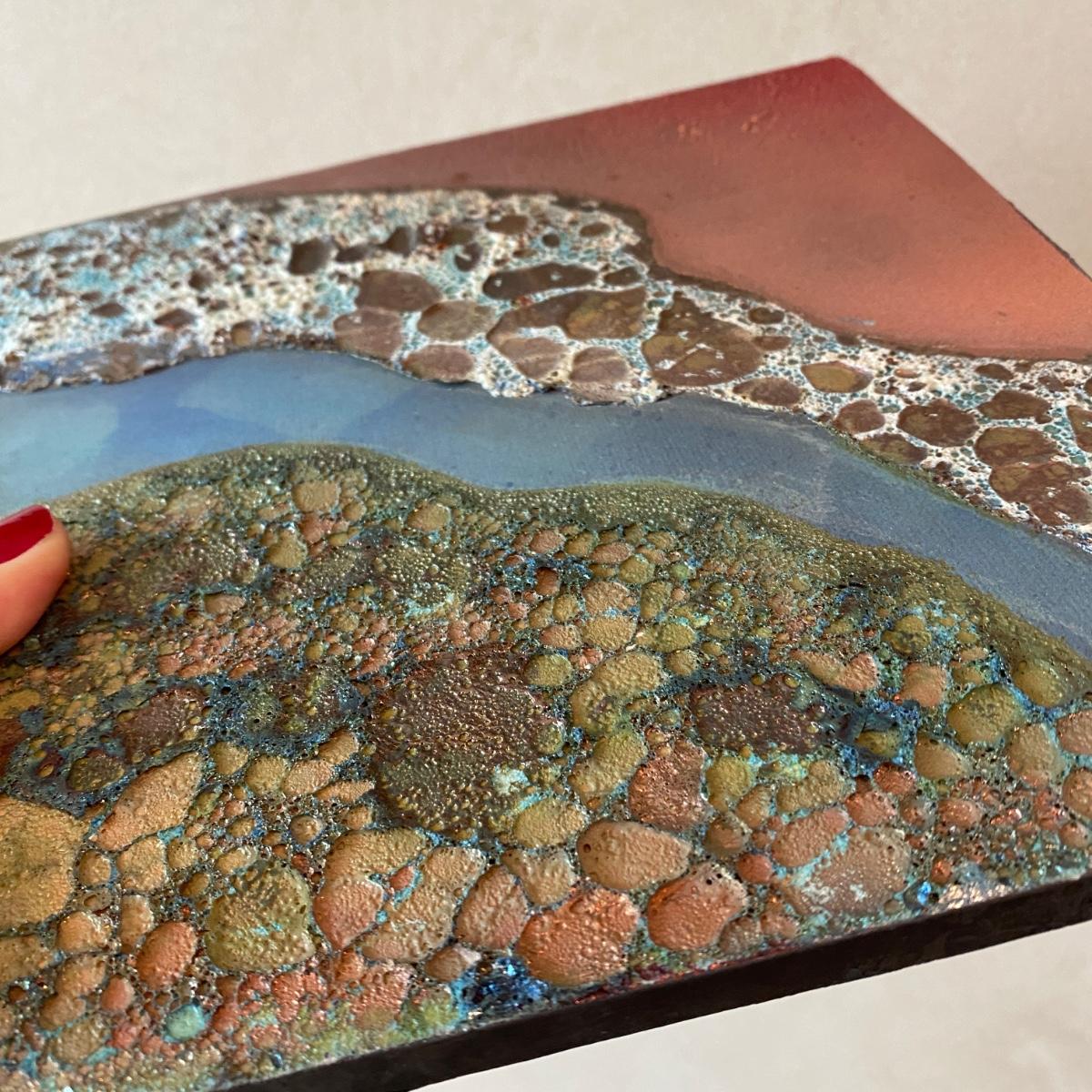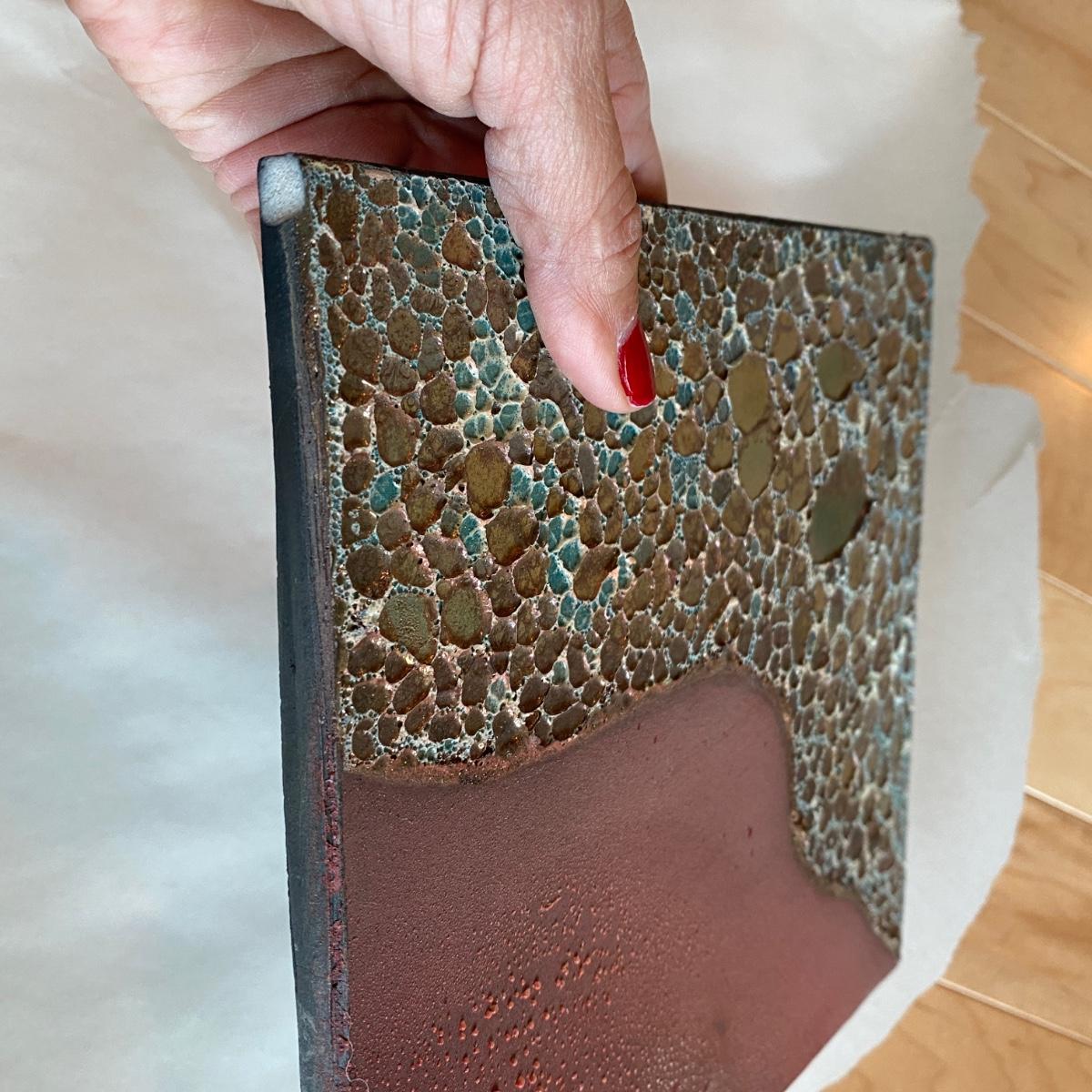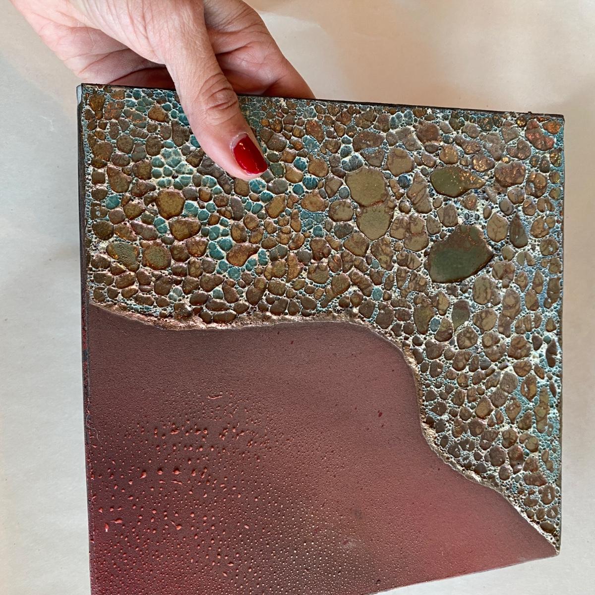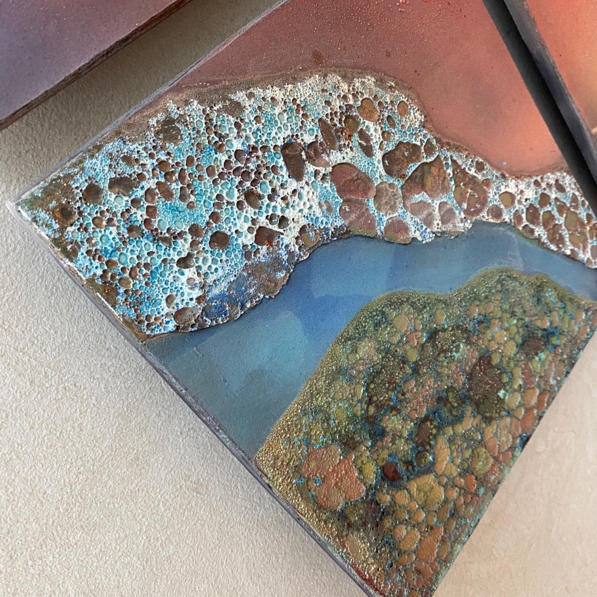 Steven Forbes-DeSoule has created 10 numbered Raku tiles to make a magnificent wall display. Hang horizontal or vertical for a different look. Each tile measures 8.5” x 8.5”. All have numbers and one has a signature. One tile has a small chip on side. See photos. It's hardly noticeable when piece is hanging. Shipping available.
