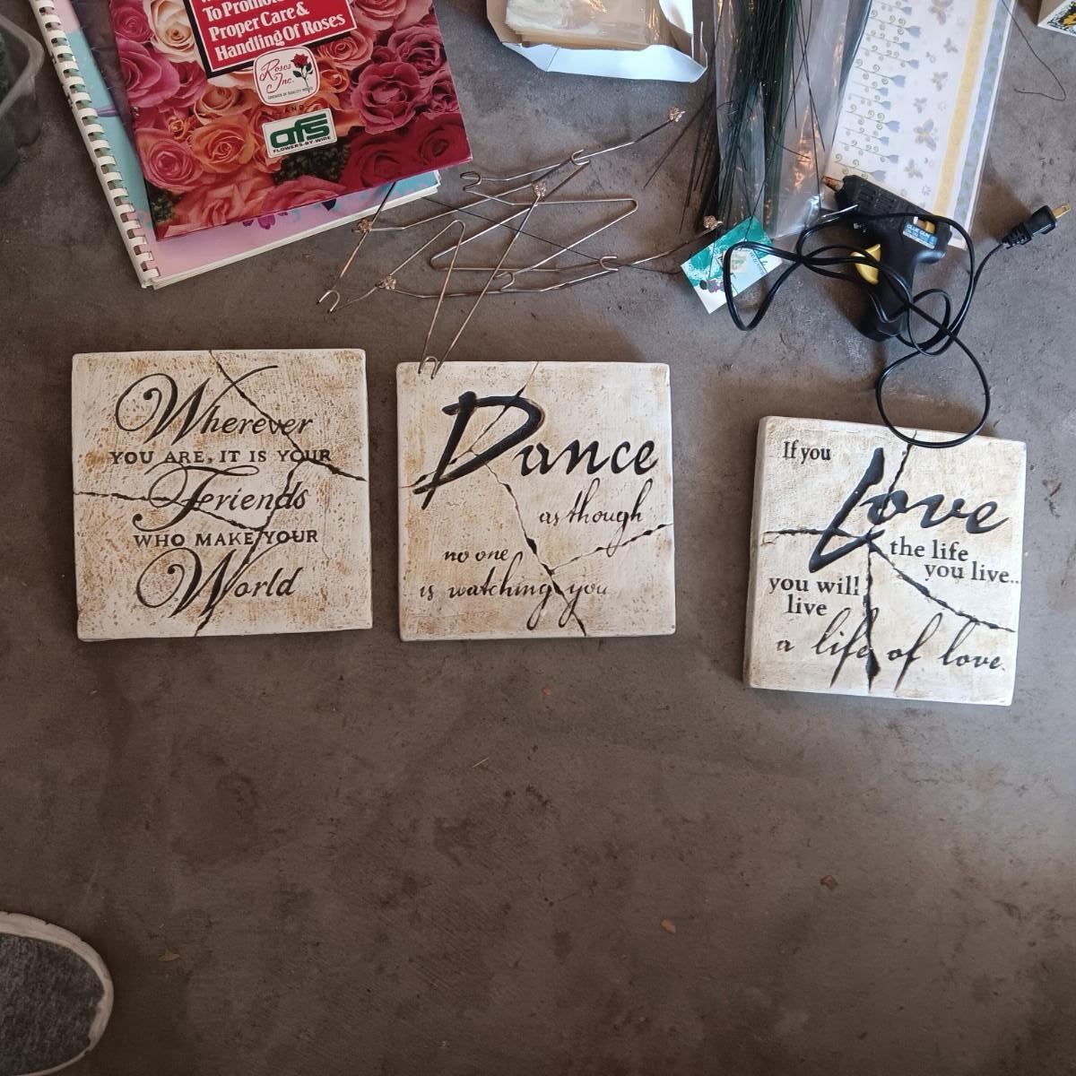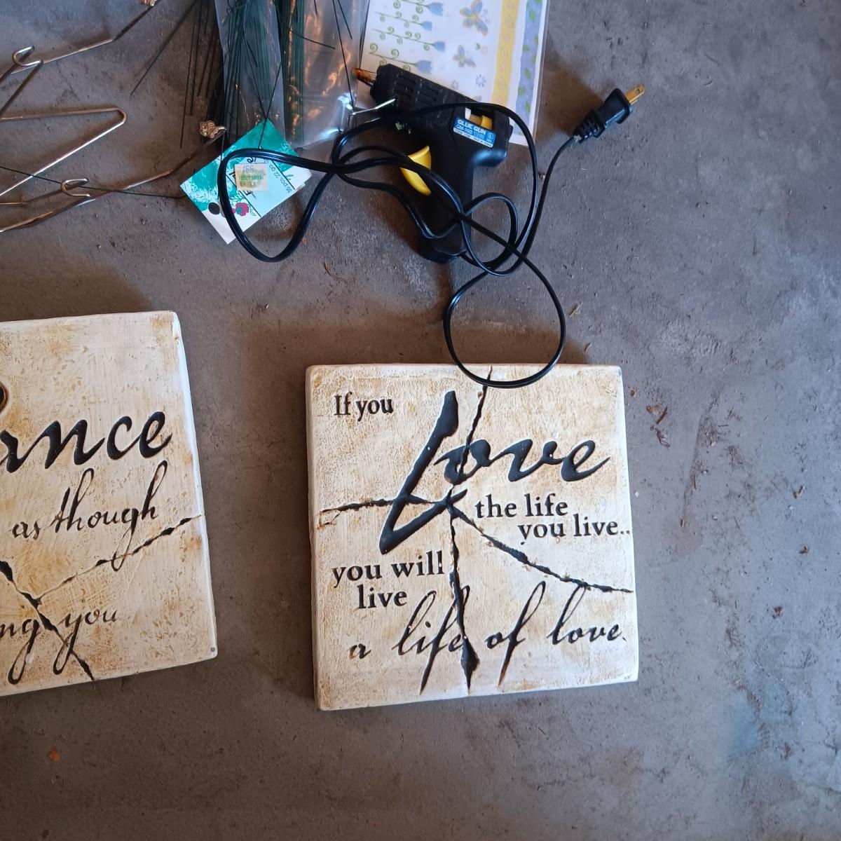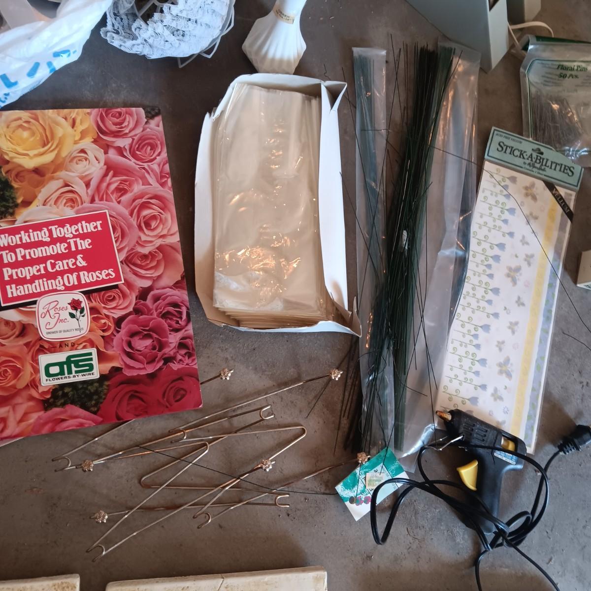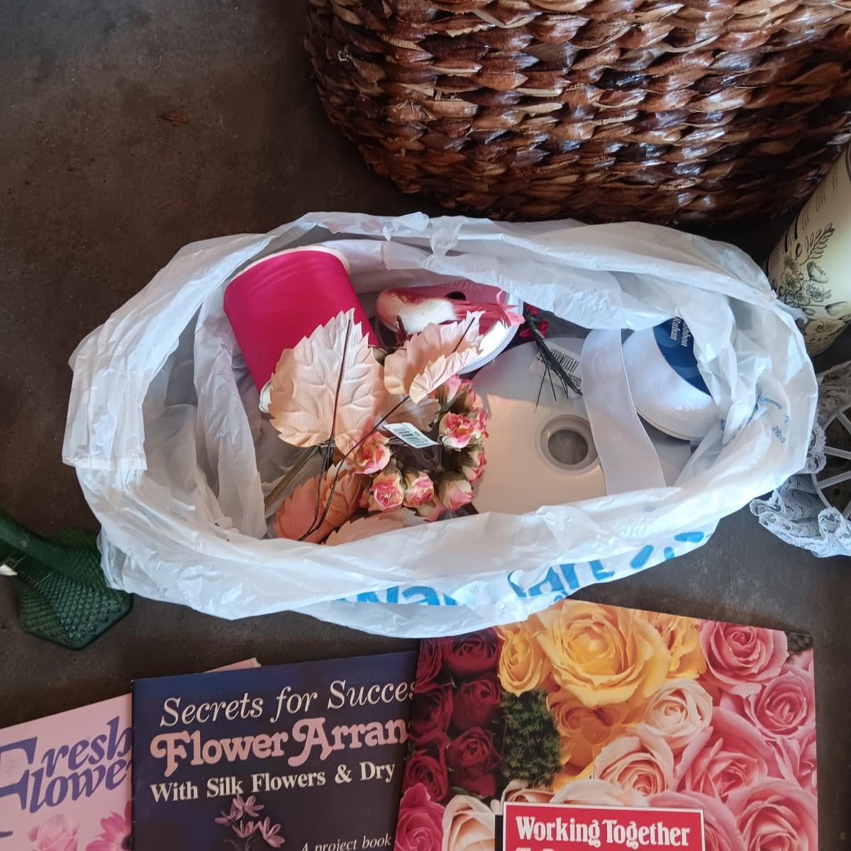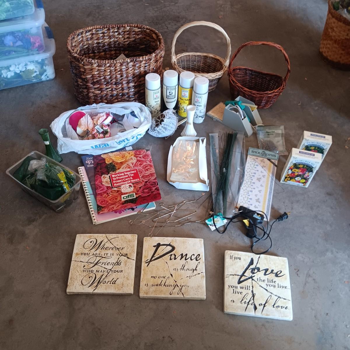 TILED WALL HUNG QUOTES, WICKER BASKETS, FLOWER ARRANGING SUPPLIES AND MORE