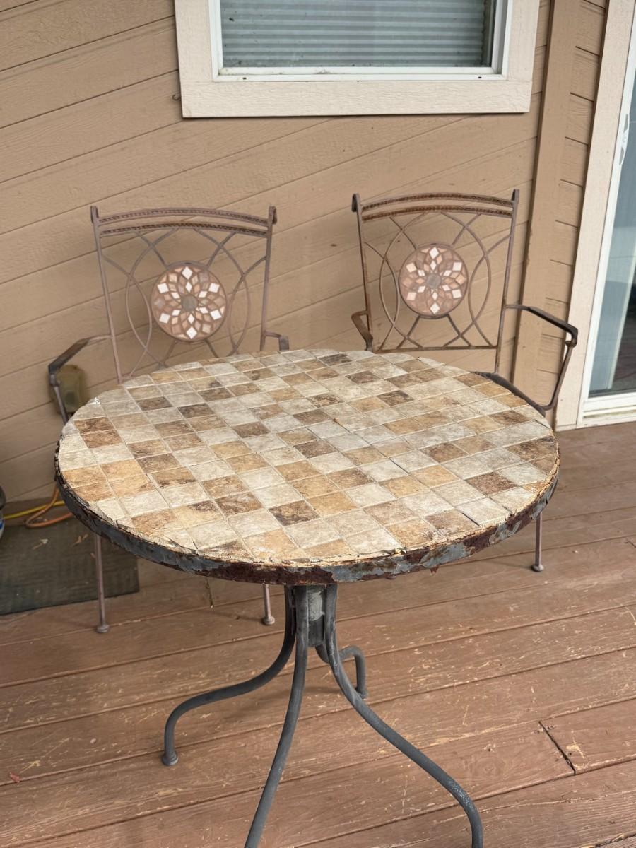 Tile-Top Outdoor Bistro Set – 2 Chairs + Round Table