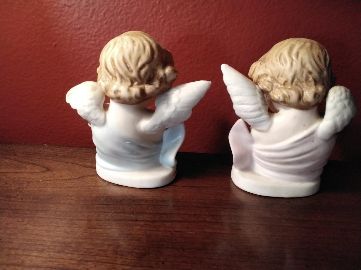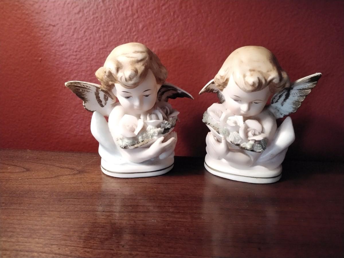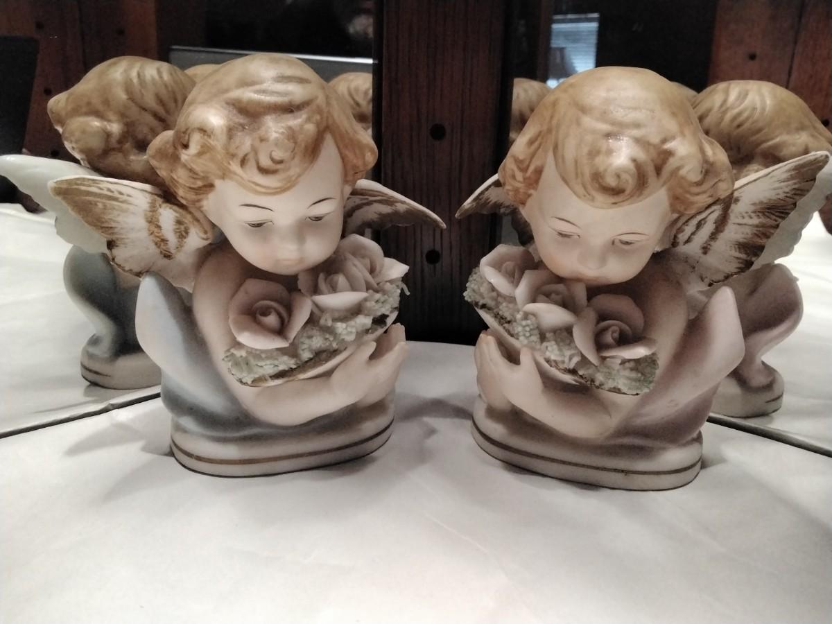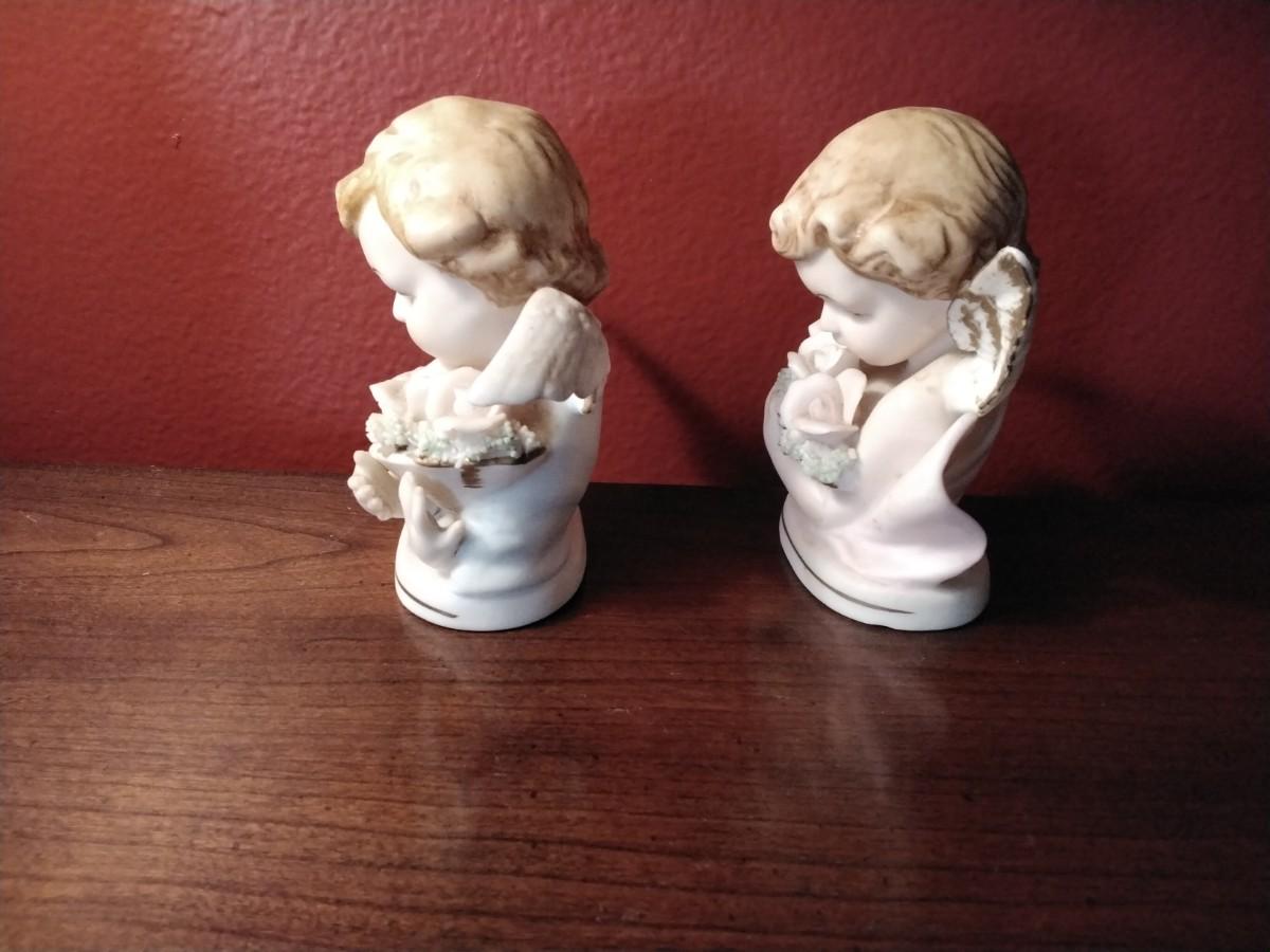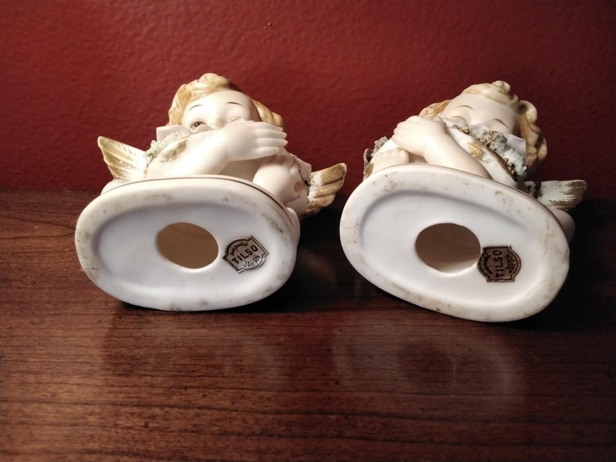 Made in Japan.Tilso Boy & Girl cherub bust, bisque finish.Tilso sticker on base. No chips, cracks or crazing.