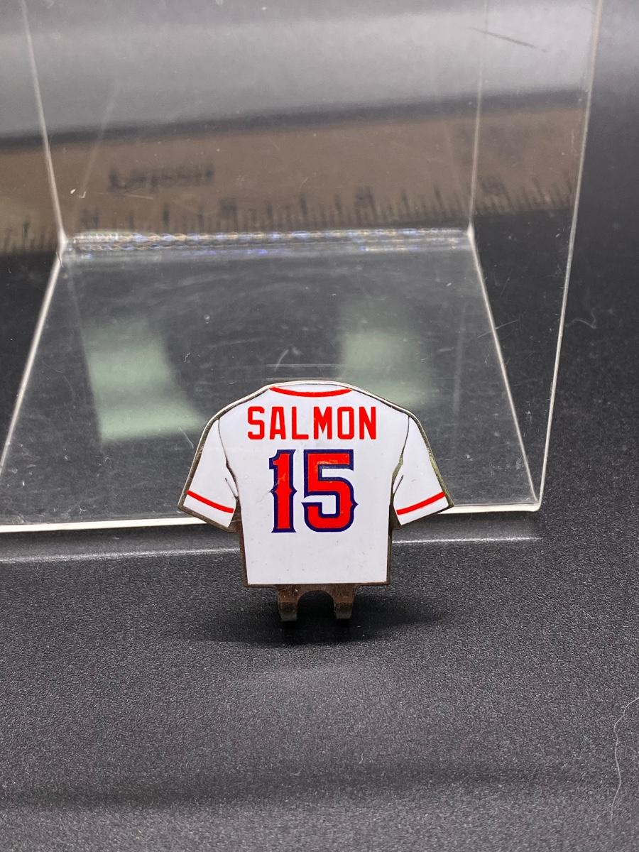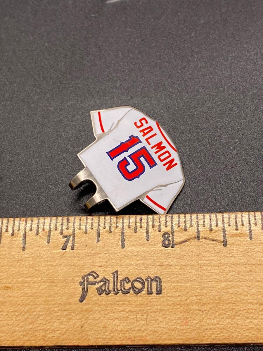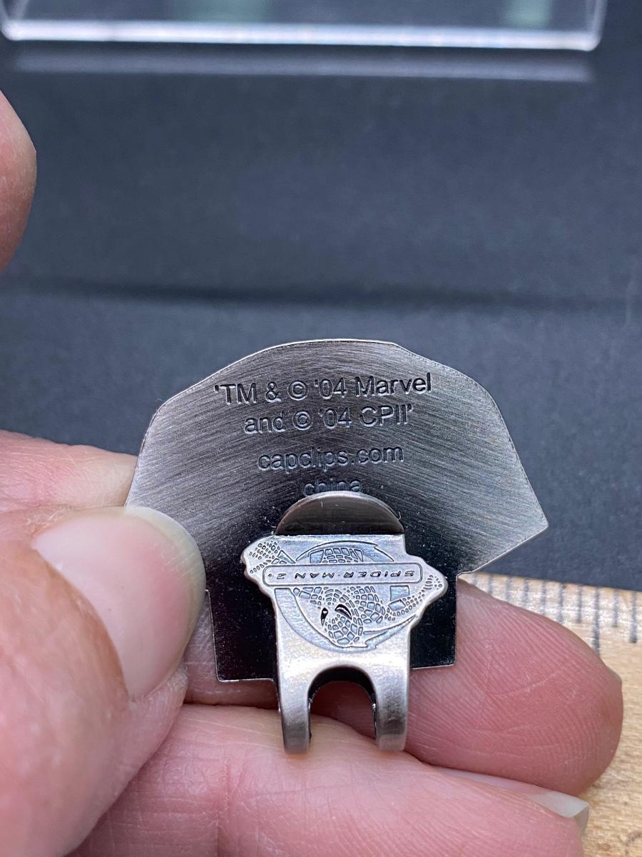 2004 Spider-Man 2 movie promotion item. Tim Salmon #15 of the Anaheim Angels (Los Angeles Angels) hat clip. Not sure if this was a stadium promo. In good condition.