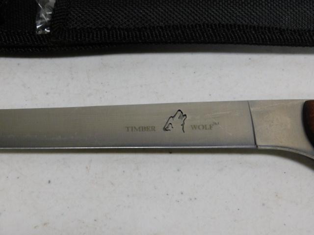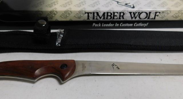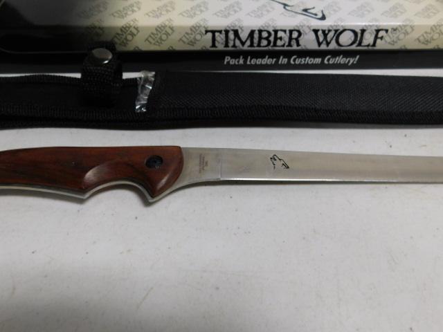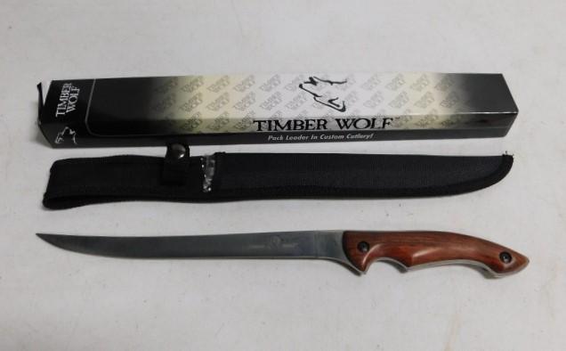 Timber Wolf Wood Grain Handle Fixed Blade Fillet Knife with Sheath