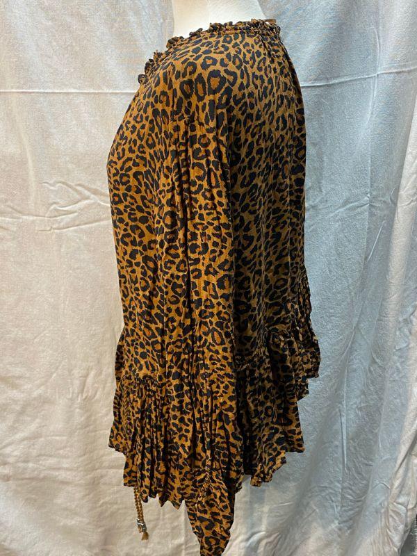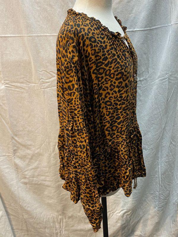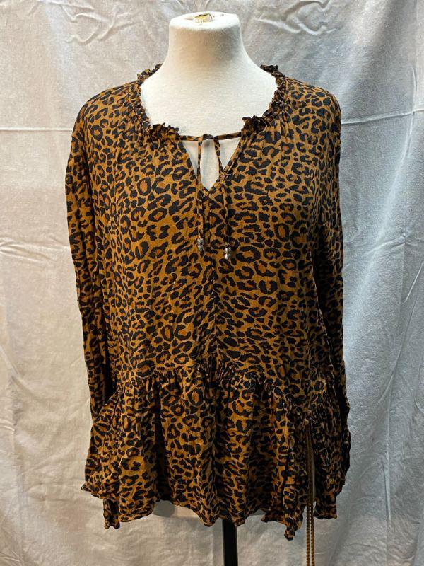 Time and Tru leopard print peasant top. Short ruffle tie neck. Faux drawstring look waist. Scrunch elastic cuff. Size XXL (20). Good condition.