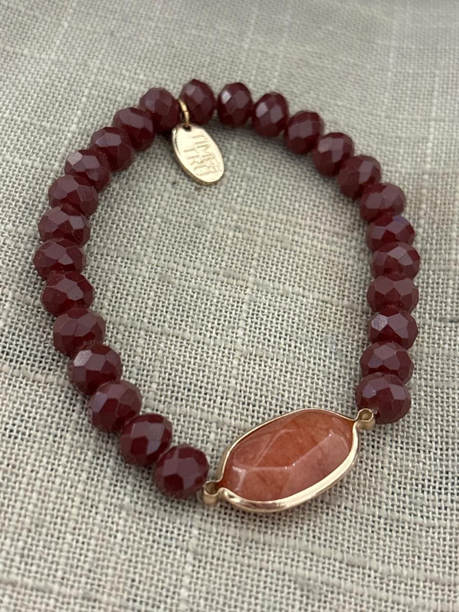 Time and true brown beaded stretch bracelet