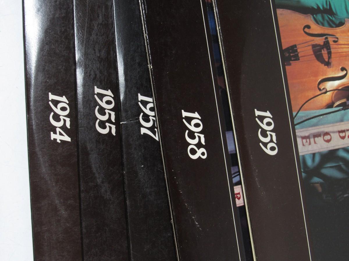 12 Yearly items in this lot: 1954, 55, 57, 58, 59, 61, 62, 63, 65, 68, 69, and 1970. Each year's set has 2 albums with a total of 12 songs on each album (this lot has 24 albums, so approx. 288 songs total), covering numerous songs and artists popular during that year. Albums were released between 1988-1990. All are in excellent condition.