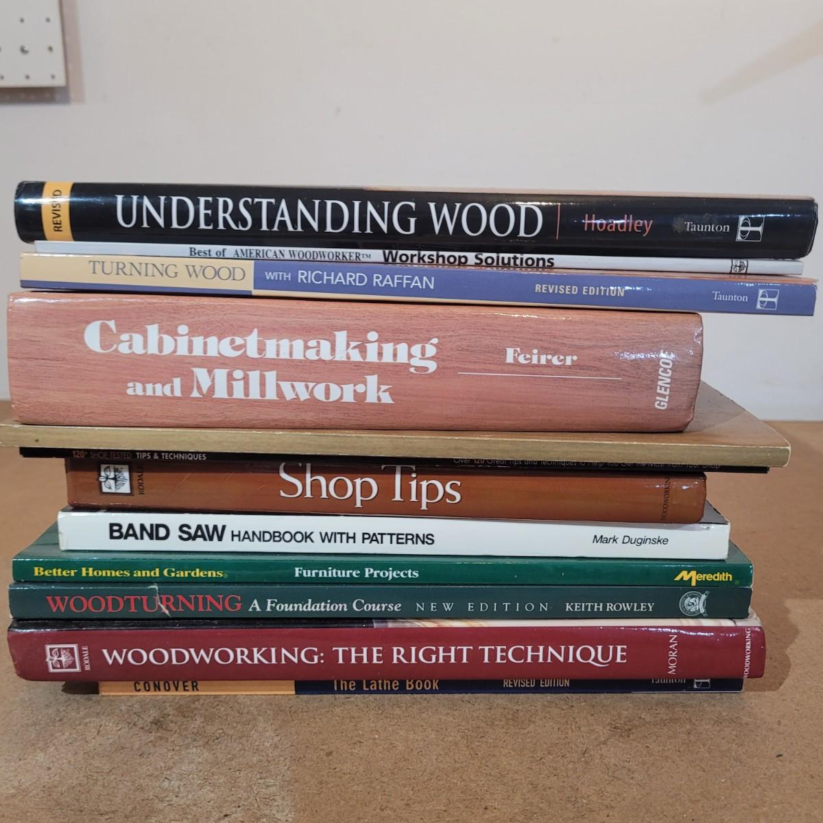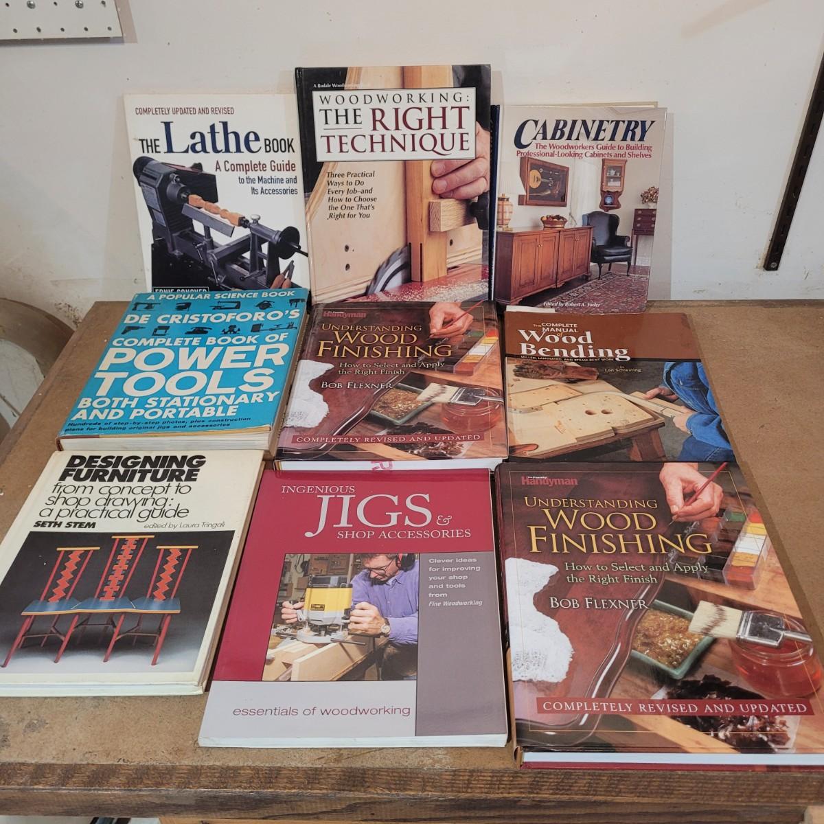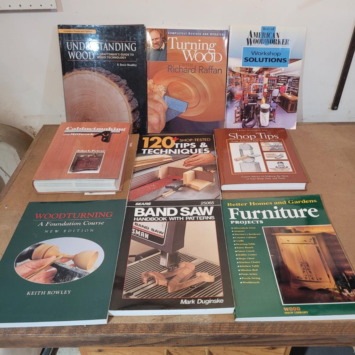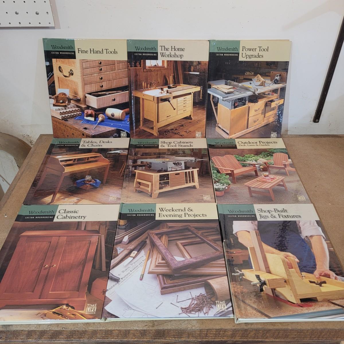 19 Time Life hardback books. Also includes 23 miscellaneous woodworking books. Subjects include, cabinetry, furniture, power tools, wood bending, finishing, techniques, and Shop tips.