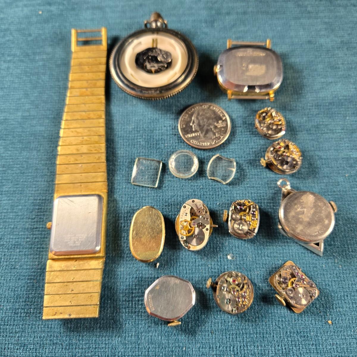 This auction lot is for TIme Pieces - Pieces and Parts. This grouping is a selection of watch parts - perfect for Steam Punk creations, unusual art or actual watch repair. Have fun with this one.