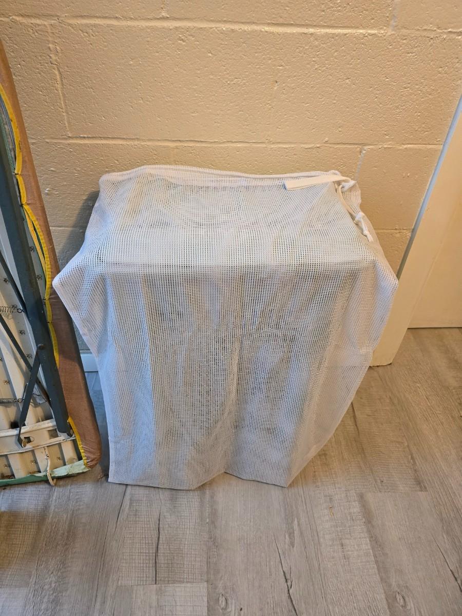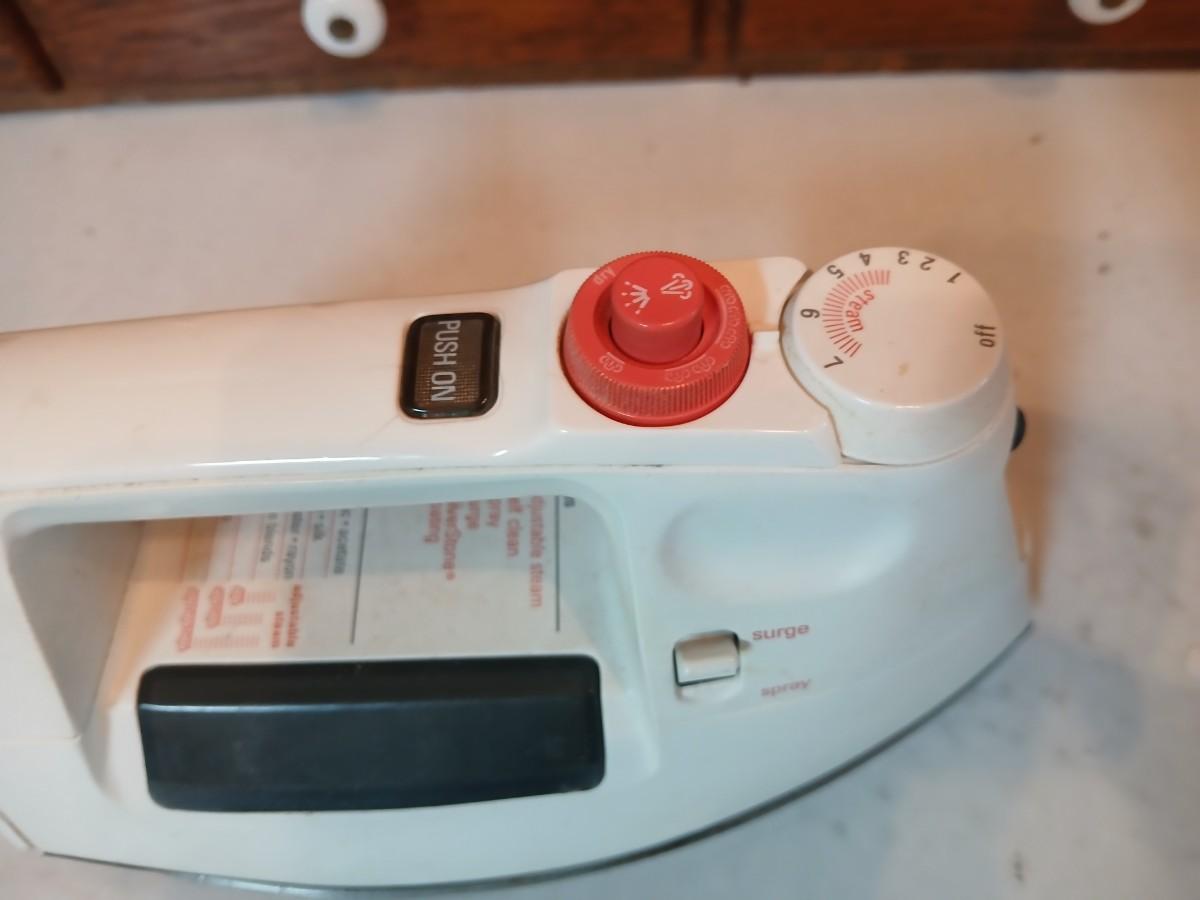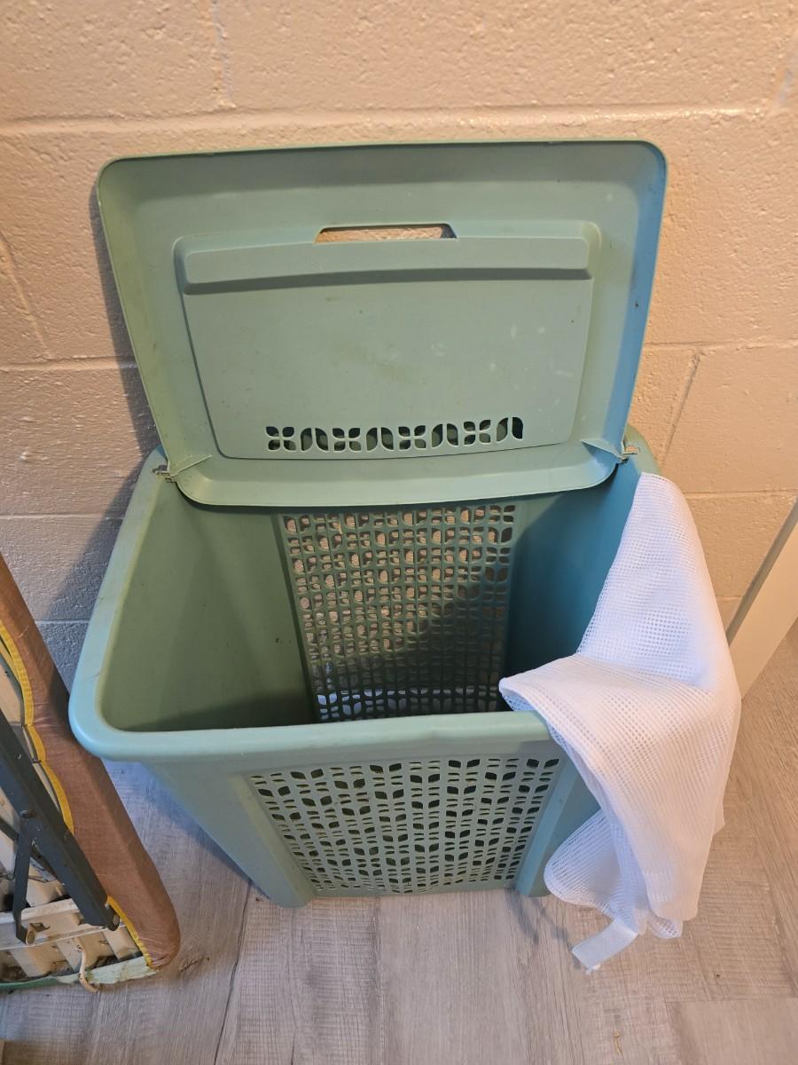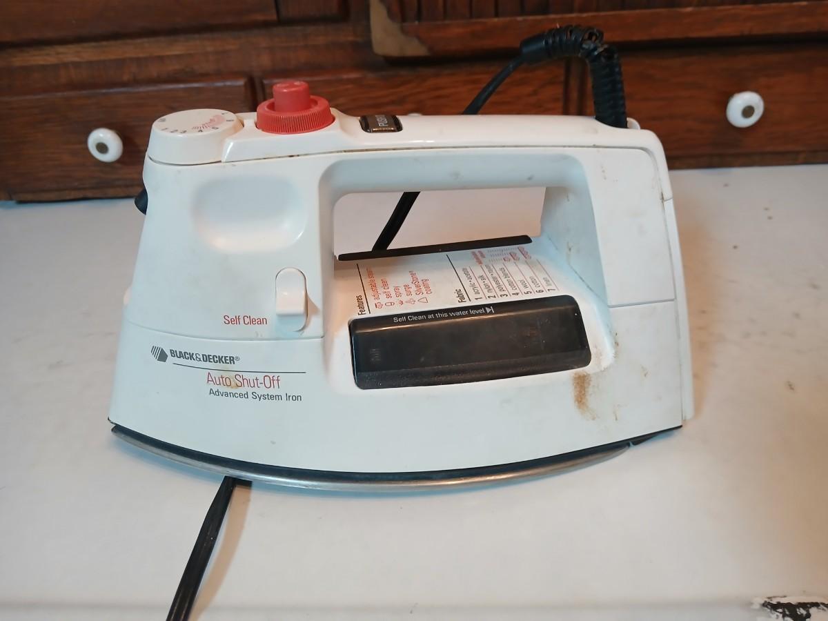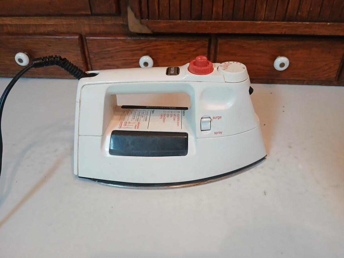 Time to do laundry!!Old metal Ironing board with hamper, laundry bag, Clothes iron, Lint brush and a Remington clothes dryer