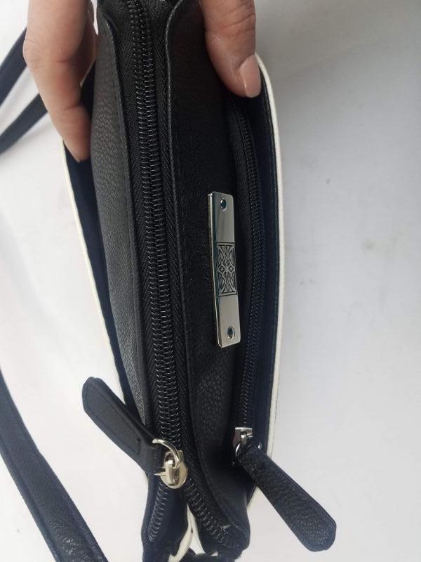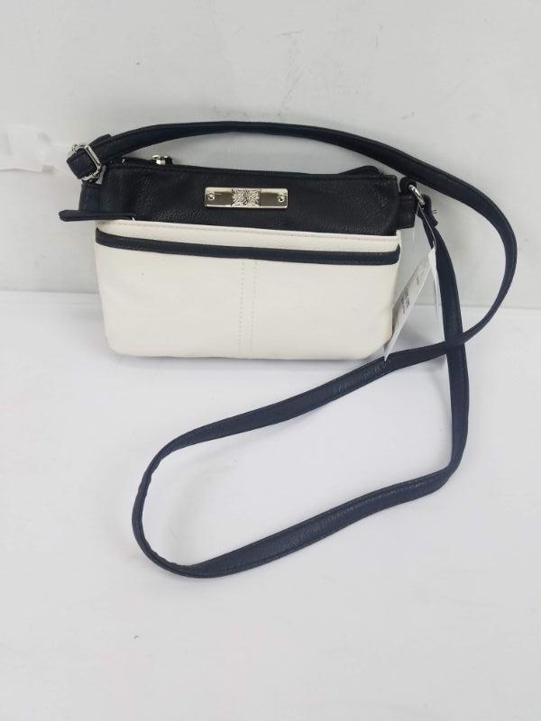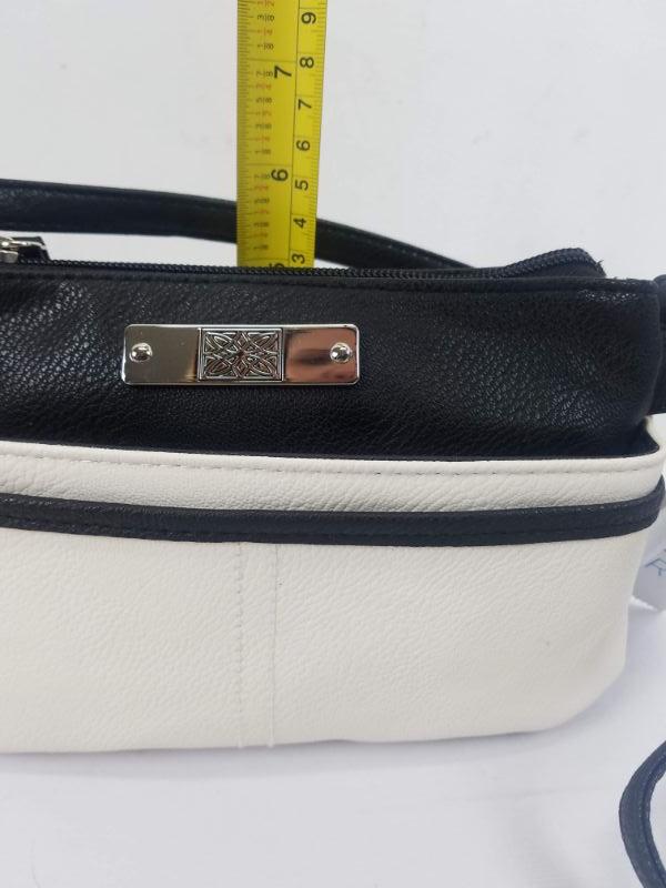 Time & Tru Small Purse with Adjustable Shoulder Strap, Black & Cream - New