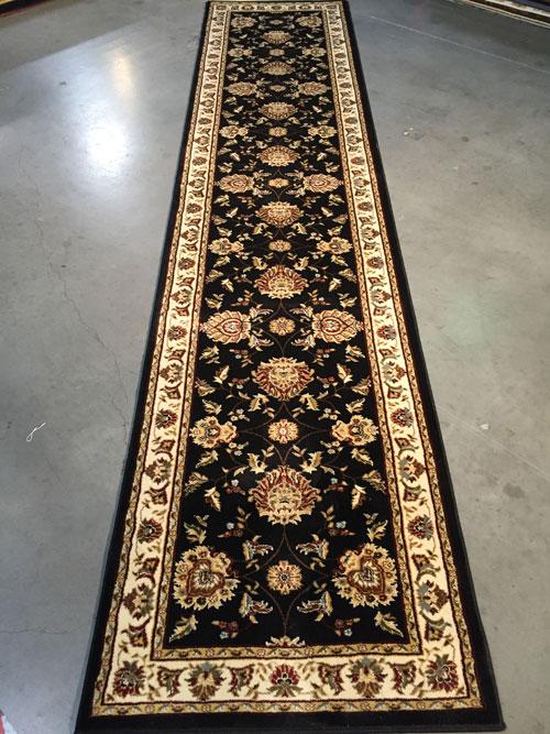 2 Feet 7 Inches X 12 Feet timeless Turkish Oushak Design Runner. In Black, Ivory and Multi Accent Colors polypropylen Pile. Power Loomed in Turkey.