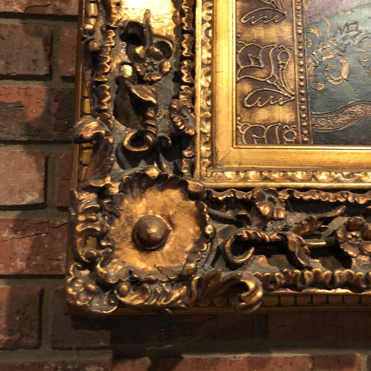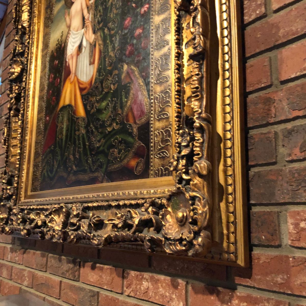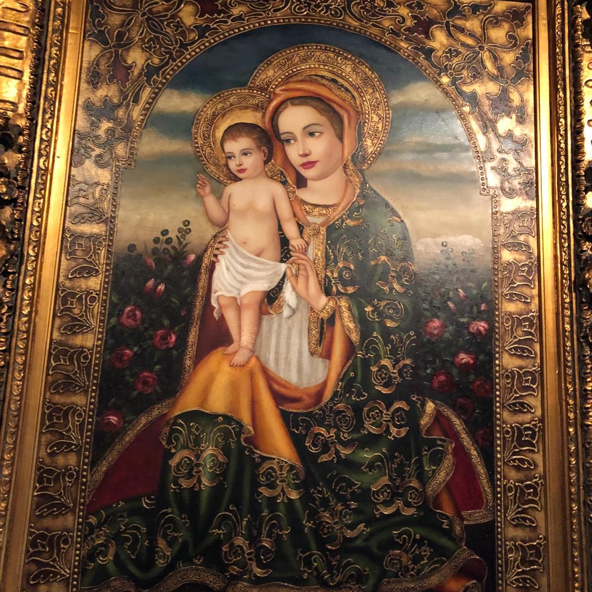 Lot includes a stunning Timeless Treasures Virgin Mary Gold Gilt Framed oil painting on canvas with a COA. Frame is a work of art itself, see pictures.