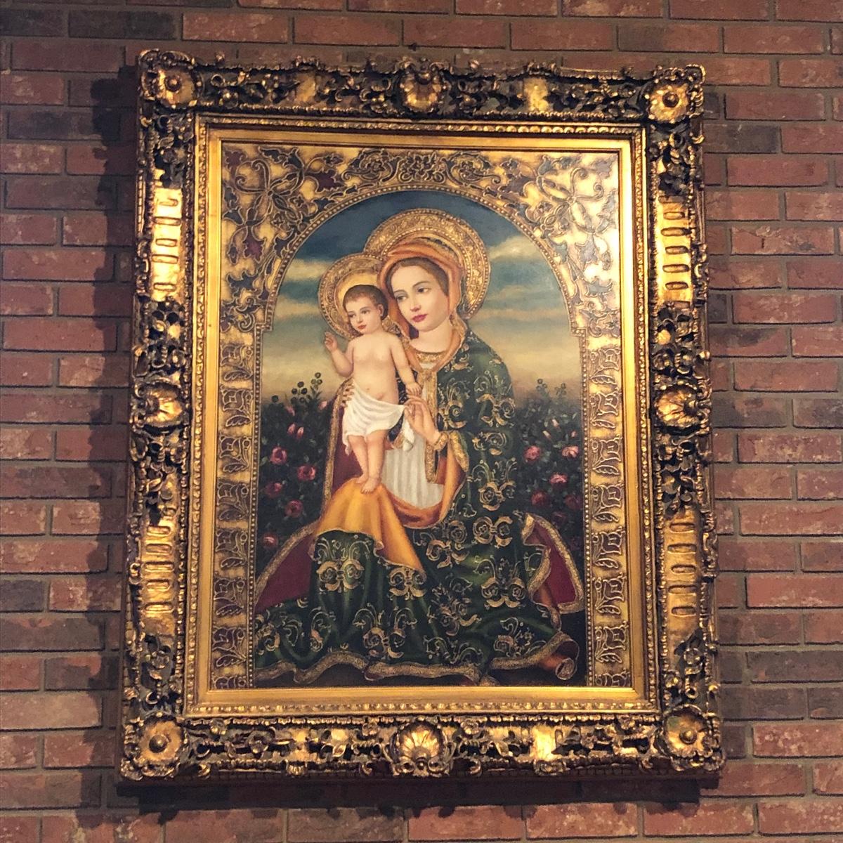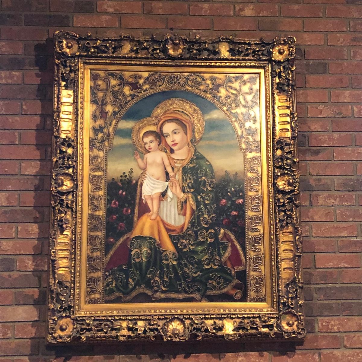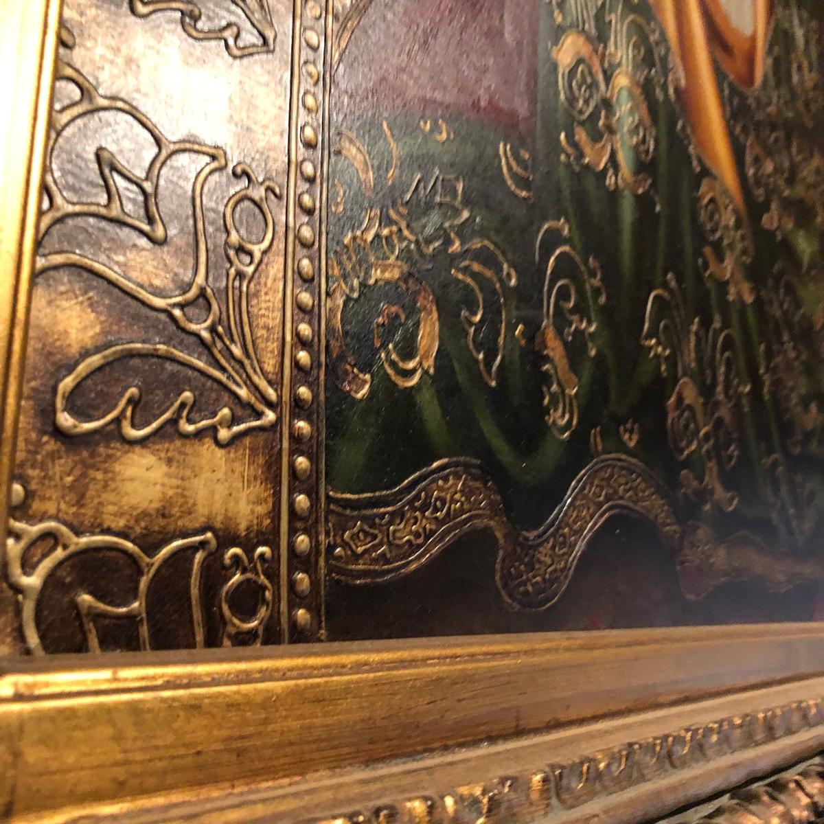 Lot includes a stunning Timeless Treasures Virgin Mary Gold Gilt Framed oil painting on canvas with a COA. Frame is a work of art itself, see pictures.